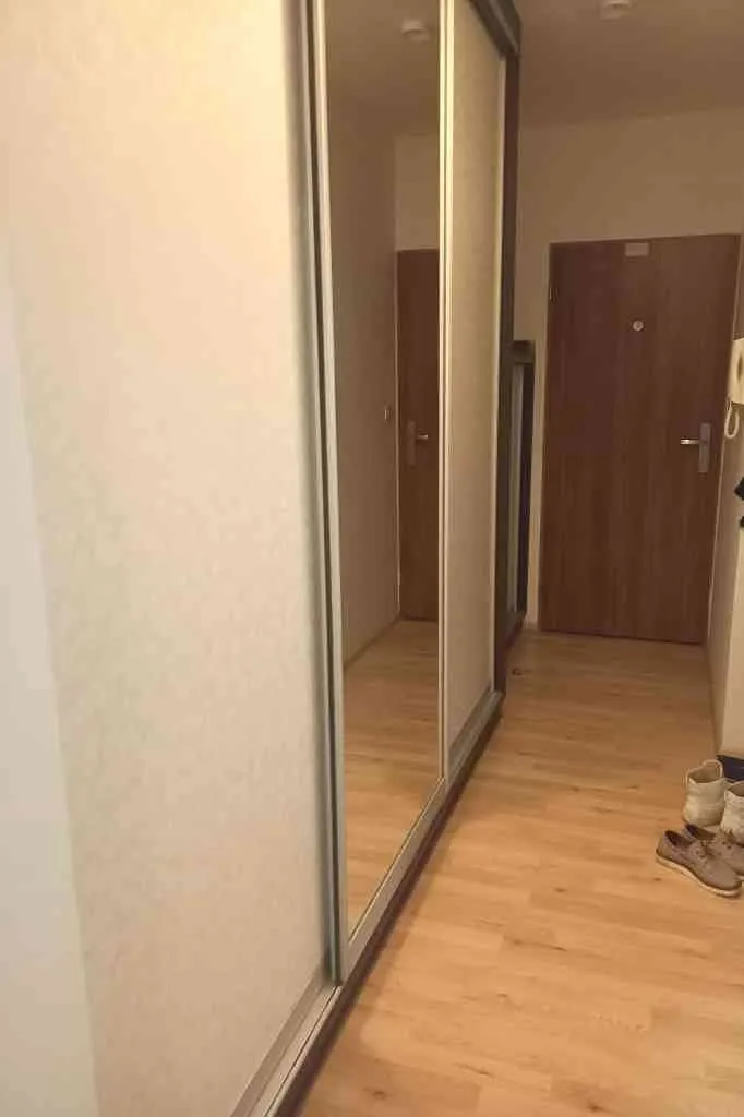 Byt byl původně řešený jako prostorná garsoniéra, kde rozloha obytné místnosti s kuchyňským koutem činila 37 m2, následně došlo k vyčleněním prostoru cca 12 m2 pro samostatnou ložnici. Oddělení je provedené pomocí lehké konstrukce, kterou lze nahradit pevnější, například sádrokartonovou, nebo ji naopak demontovat. Ostatní plochu tvoří prostorná koupelna s vanou a WC a předsíň s vestavěnými skříněmi.