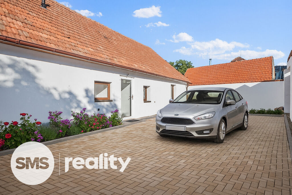 Za domem se nachází útulný dvorek s vydlážděnou plochou, který je možné využít i jako parkovací stání pro dvě auta. V přední části domu je zahrádka, sklep a další místo pro odpočinek, ideální pro posezení nebo grilování.