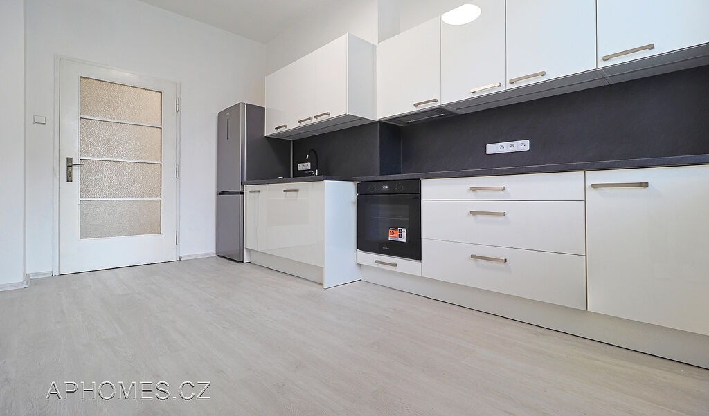 Součástí vybavení bytu je zcela nová moderní kuchyňská linka (vestavěná trouba, digestoř, sklokeramická varná deska, myčka nádobí i lednice.