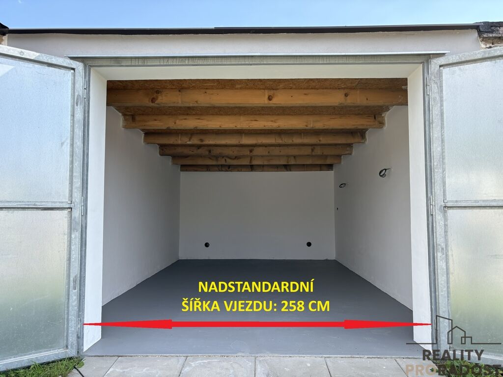 Nadstandardně široký vjezd – vjezdový otvor cca šířka 258 cm, výška 206 cm, ideální i pro větší vozidla.