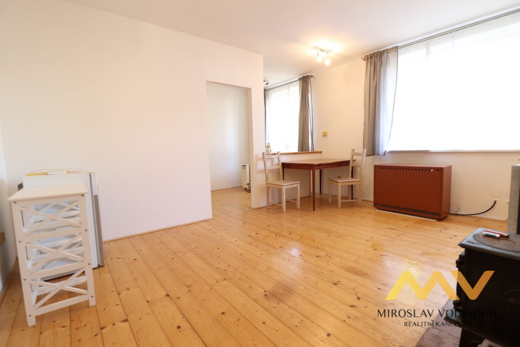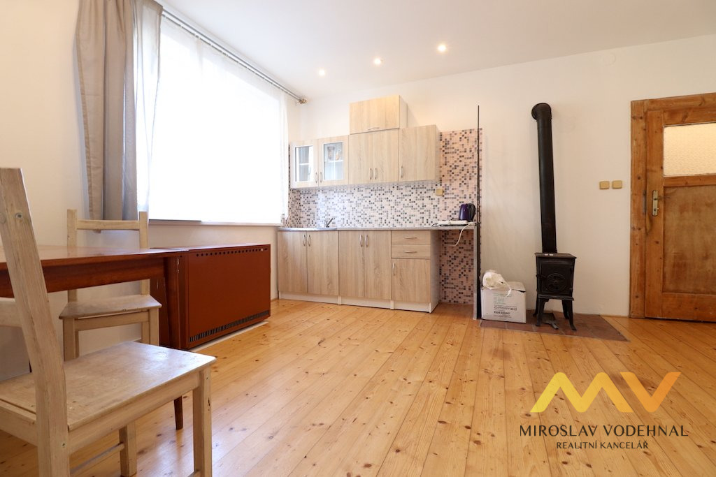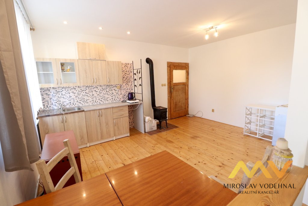 Vytápění akumulačními kamny a také krbovými kamny, popř. je k dispozici i olejový radiátor, ohřev vody el. bojlerem. Zavedený internet, STA. K bytu náleží sklepní kóje, půdní prostor (sušení prádla) a zejména k využití je část zahrady k relaxaci, grilováni atd. a kolna. Nová plastová okna.