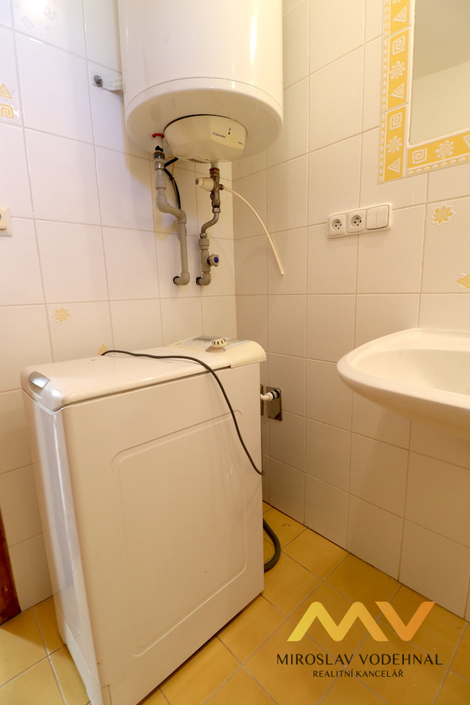Jedná se o částečně zařízený byt s odděleným prostorem na spaní. Kuchyňský kout vybaven novou kuchyňskou linkou, vaření na dvojplotýnkovém vařiči. Koupelna je nová, se sprchovým koutem, umyvadlem a koupelnovým zrcadlem, toaletou), přípojka na pračku.