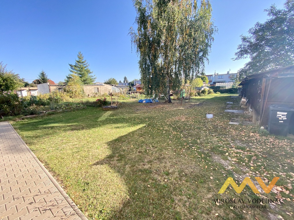 Dispozice: obývací pokoj s kuchyňským koutem, koupelna s WC, předsíň, sklep, kolna, zahrada.