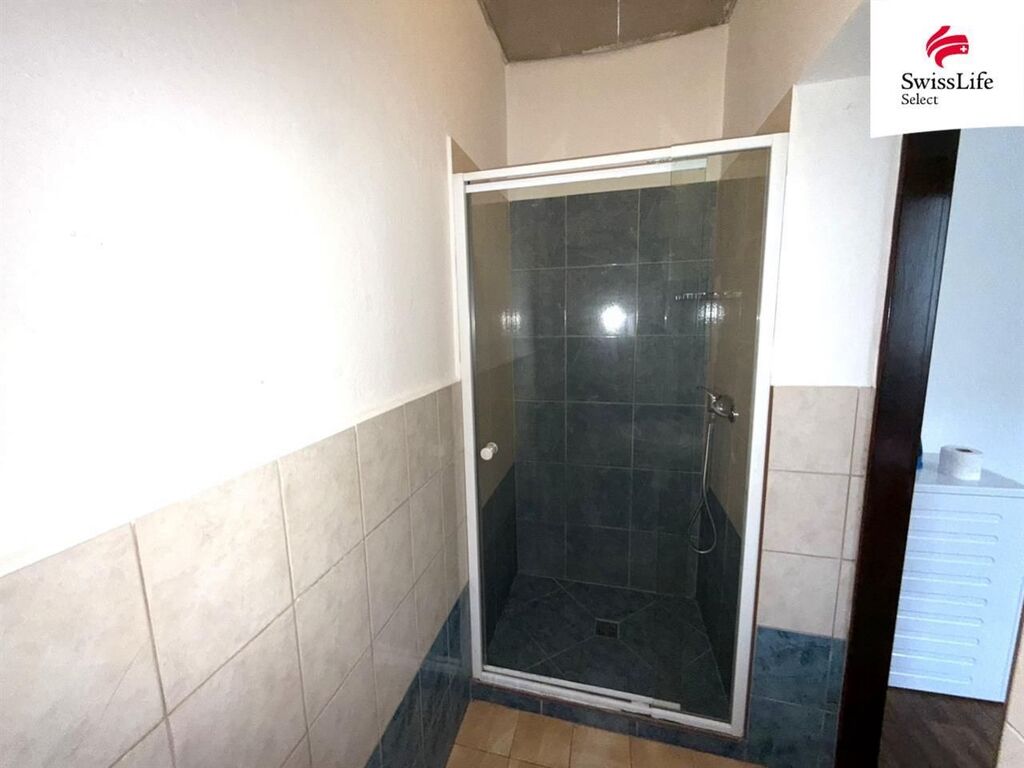 Koupelna se sprchovým koutem a WC dohromady
