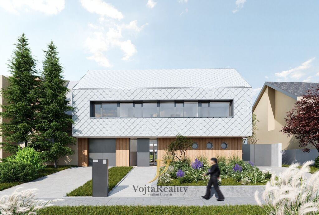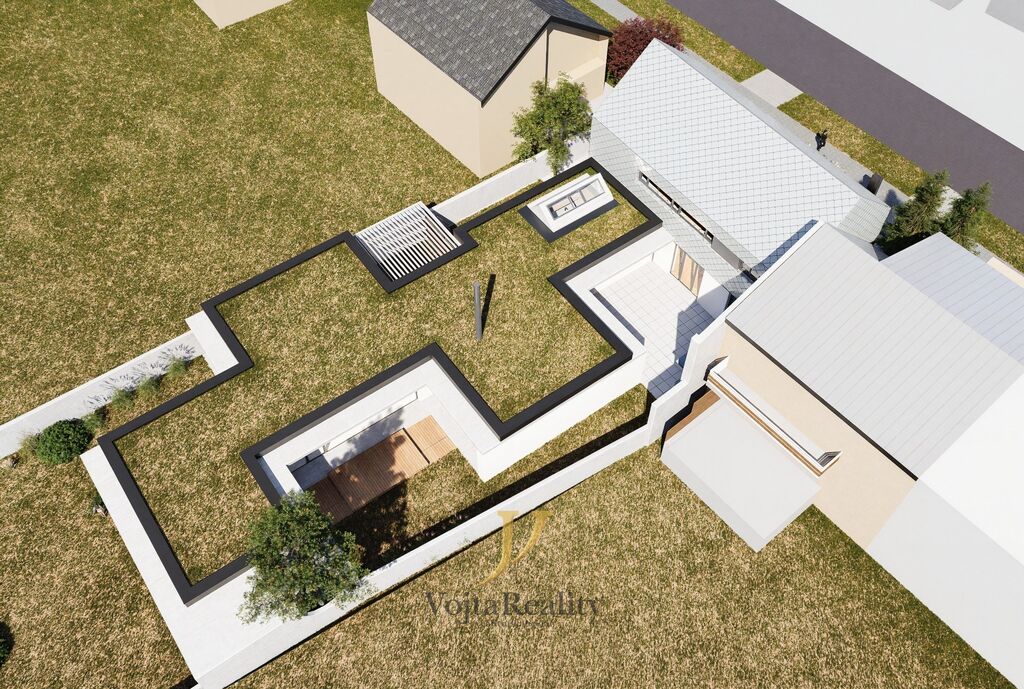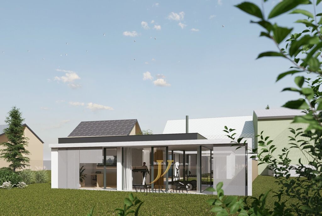 K pozemku je vypracována architektonická studie moderního rodinného domu, která citlivě navazuje na charakter okolí a zároveň přináší moderní prvky a nadčasové řešení.