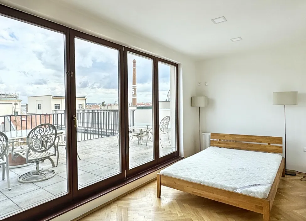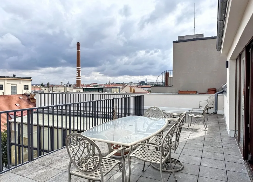 Dominantou celého bytu je terasa o rozloze 56 m², která poskytuje ideální prostor pro odpočinek po náročném dni, ranní kávu s výhledem na město nebo večerní posezení s přáteli a rodinou při západu slunce.