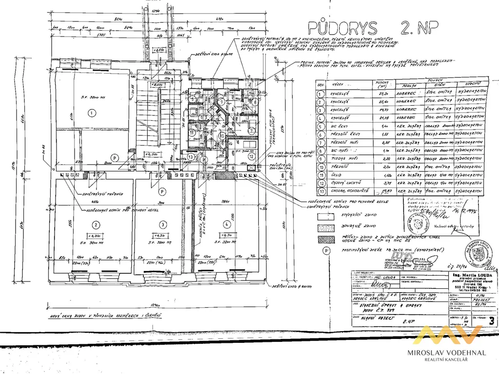 Ve 2. nadzemním podlaží se nachází kancelářské prostory o výměře 131 m², které tvoří čtyři samostatné kanceláře se společným zázemím – dámské a pánské toalety, kuchyňka a úklidová komora.