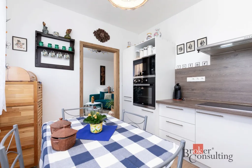 Součástí bytu je skvělý obývací pokoj, dvě samostatné ložnice a kuchyně vybavená bílou kuchyňskou linkou, který působí čistě a elegantně. V koupelně naleznete sprchový kout, toaleta je řešena samostatně. Velkou výhodou je balkón, který poskytuje místo k odpočinku nebo posezení na čerstvém vzduchu.