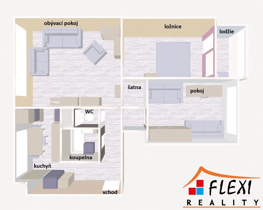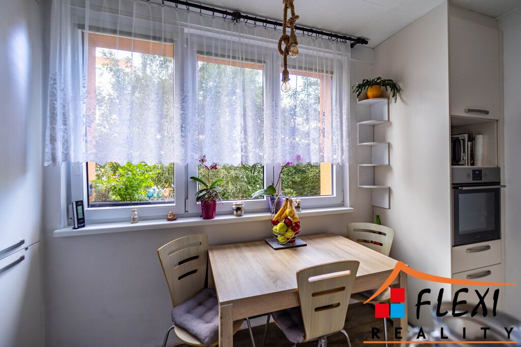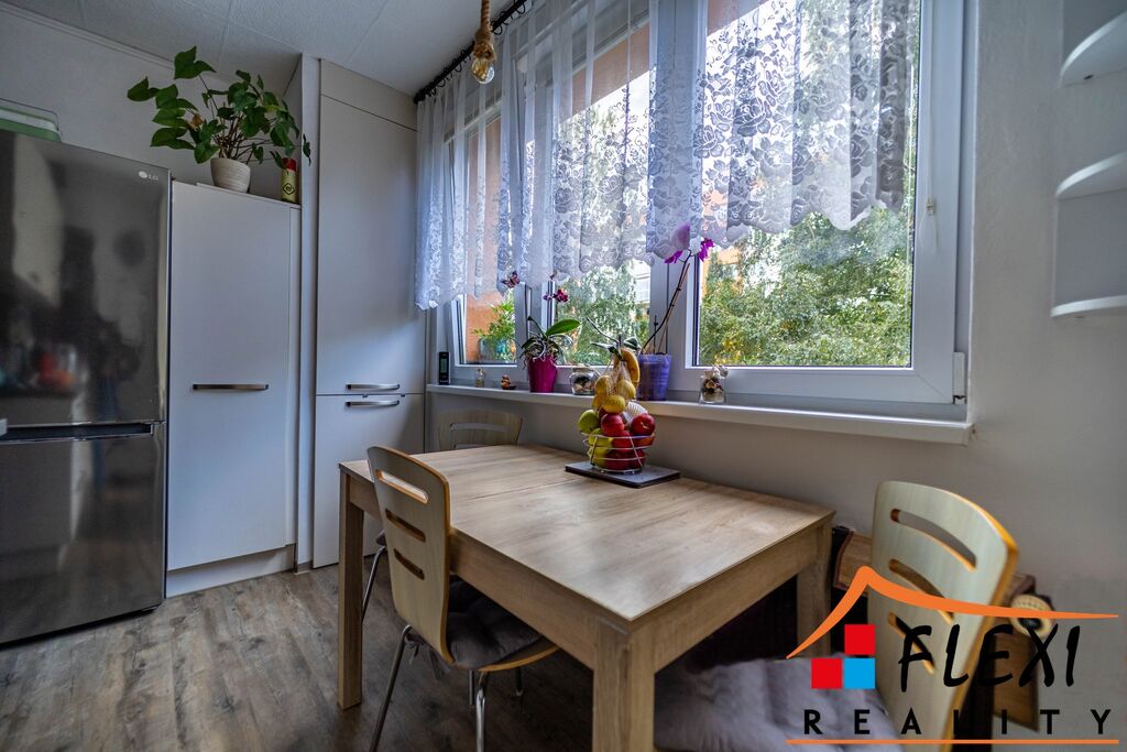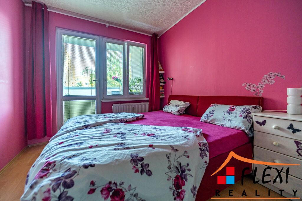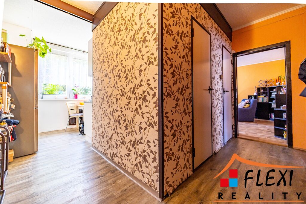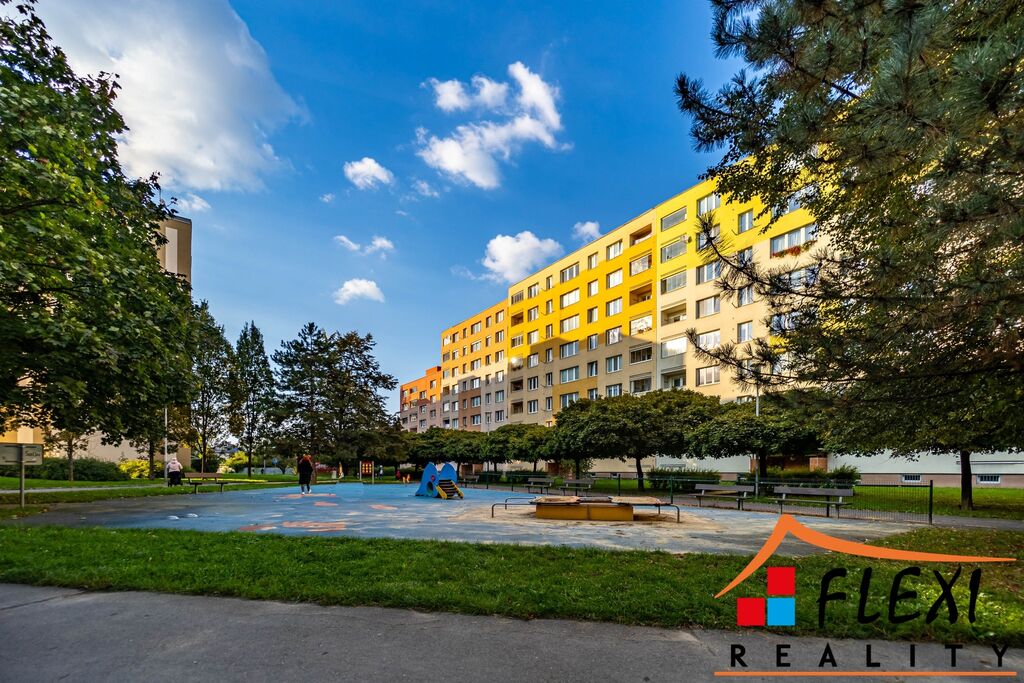 Dispozice bytu nabízí praktické řešení s dostatkem úložných prostor, slunný obývací pokoj, dva samostatné pokoje (ložnice a dětský pokoj) a lodžii s dostatečným prostorem pro posezení.