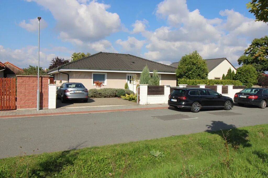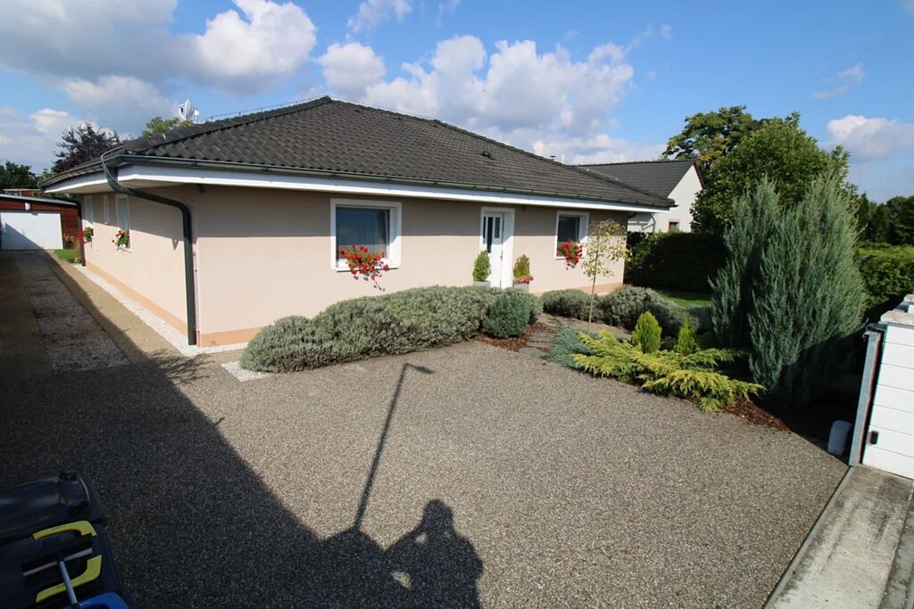 Prodej moderního přízemního rodinného domu 4+kk se zahradou, terasou a bazénem – Spomyšl u Mělníka