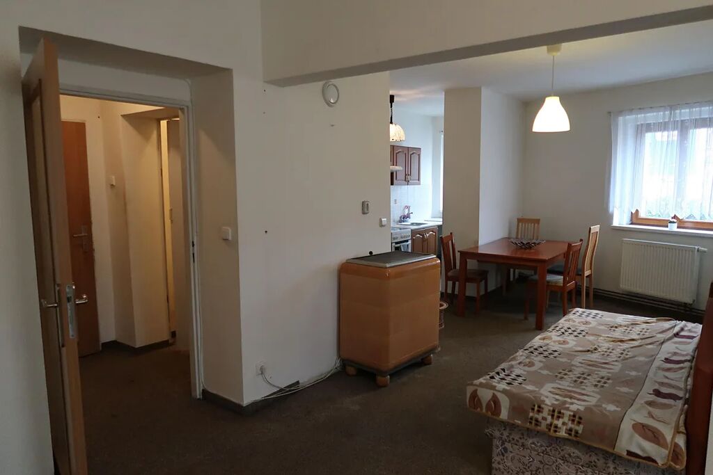 Ihned volné. Možné přihlášení pro cizince. Nabízíme Vám k dlouhodobému pronájmu světlé 2+kk, v 1. patře činžovního domu v pěší dostupnosti od metra Palmovka či Invalidovna. K dispozici prostorný obývací pokoj s kuchyňským koutem. Byt má nová protihluková okna. Linka s elektrickým vařičem, troubou a lednicí s mrazákem i základním nádobím. Samostatná ložnice bez lůžka se vstupem z obývacího pokoje. V obývacím pokoji pohovka, jídelní stůl se židlemi a prostorná skříň. Koupelna se sprchovým koutem, WC a pračkou Ústřední vytápění, možnost i akumulačních kamen, ohřev vody boilerem. Dostatek úložných prostor samostatná komora v předsíni. Výborná dopravní spojení metro, tramvaje i autobusy. Veškerá občanská vybavenost v přímém okolí. Volné ihned. Doporučujeme prohlídku. Možnost dlouhodobého pronájmu i pro cizince.