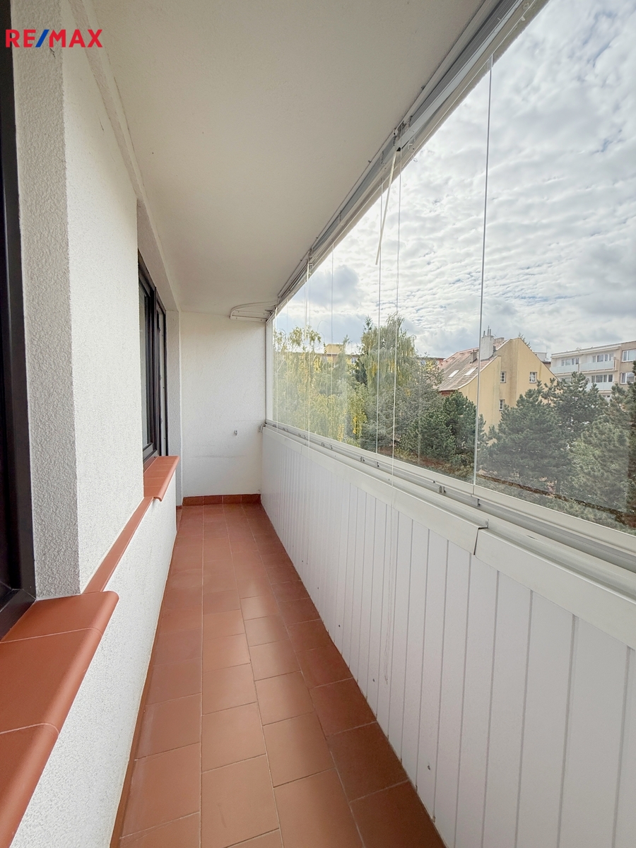 Z ložnice je vstup na zasklenou lodžii, ideální pro odpočinek nebo ranní kávu. K bytu patří také sklep, k dispozici také kočárkárna.