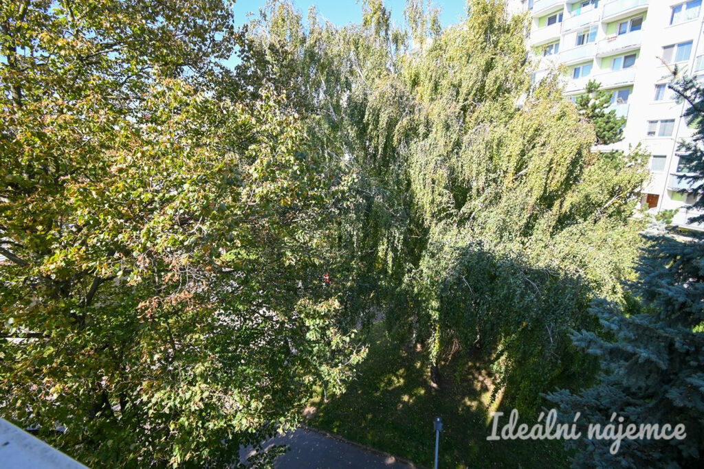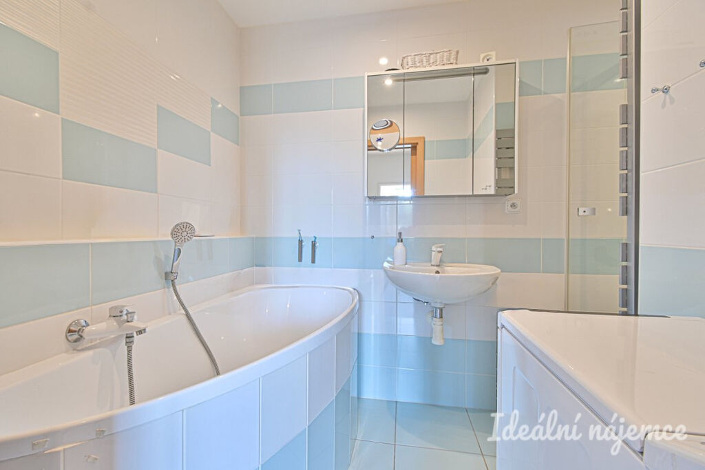 V kuchyni zůstává vestavěná kuchyňská linka se spotřebiči – elektrická trouba, varná deska, digestoř, lednice, myčka a mikrovlnná trouba. V ložnici zůstává manželská postel a šatní skříň. Ostatní vybavení bude z bytu odstraněno. Koupelna je po rekonstrukci a disponuje sprchovým koutem, vanou, umyvadlem a toaleta je samostatná.