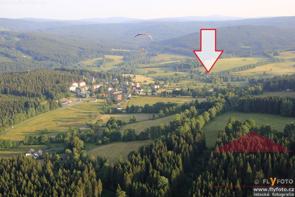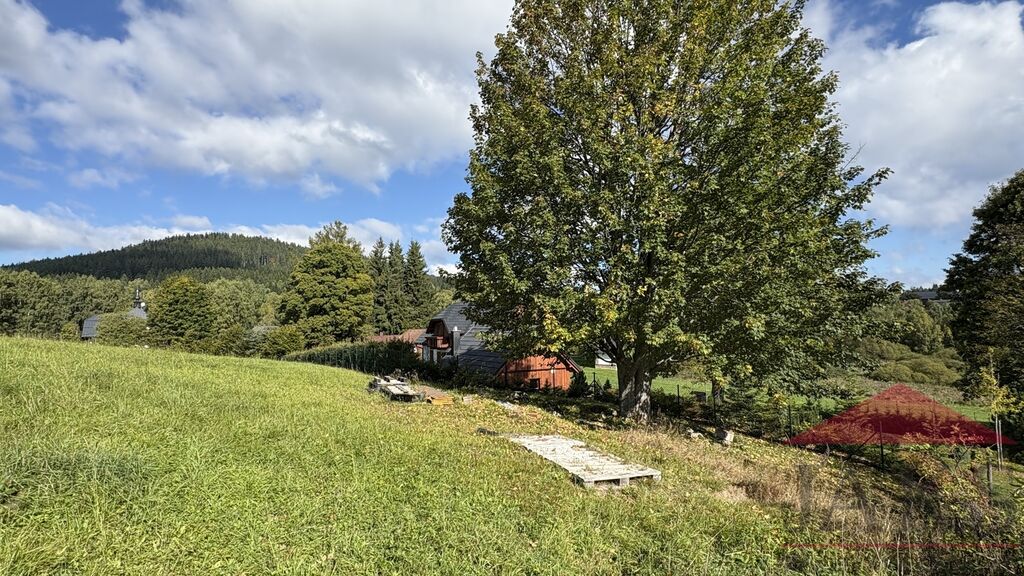 Poloha: slunná, klidná, na okraji louky, přístupný z proluky mezi domy přes pozemek ČR (správa NP Šumava) a obecní pozemek navazující na místní slepou asfaltovou komunikaci na Starém Srní.