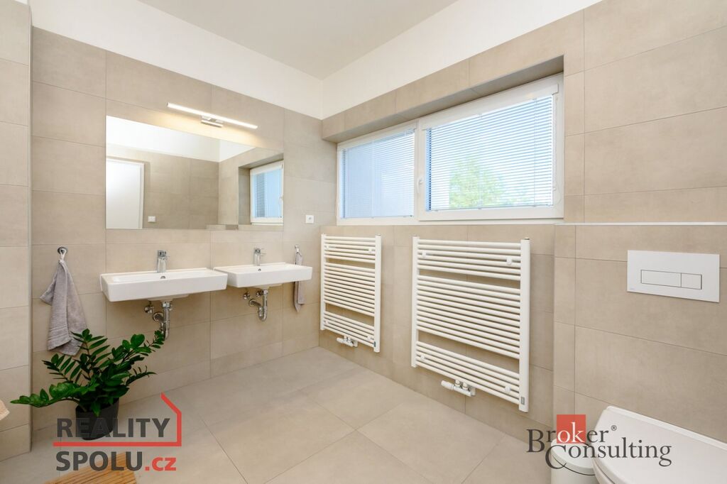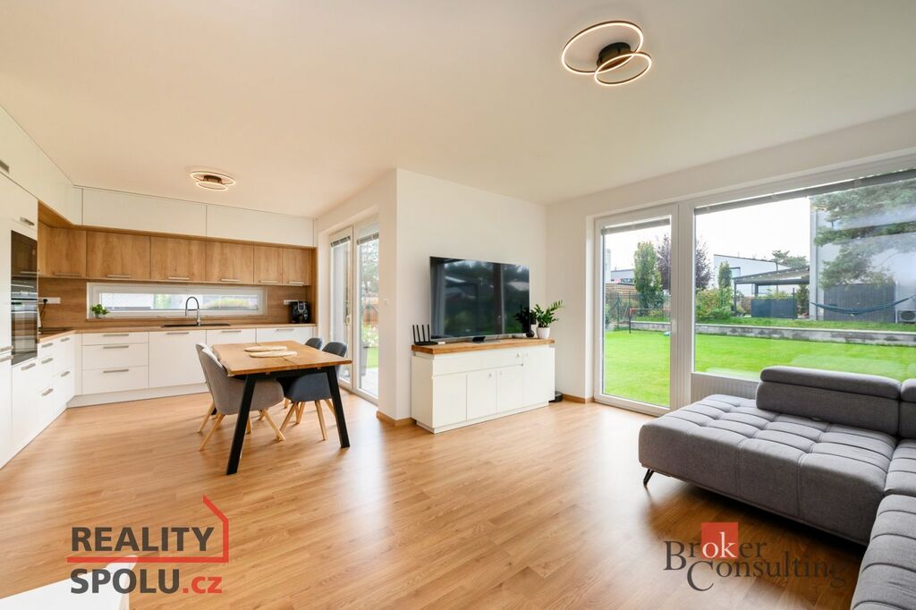 Ohřev vody a topení zajišťuje plynový kotel, dům je napojen na kompletní inženýrské sítě. K parkování je určena garáž a jedno stání před garáží.