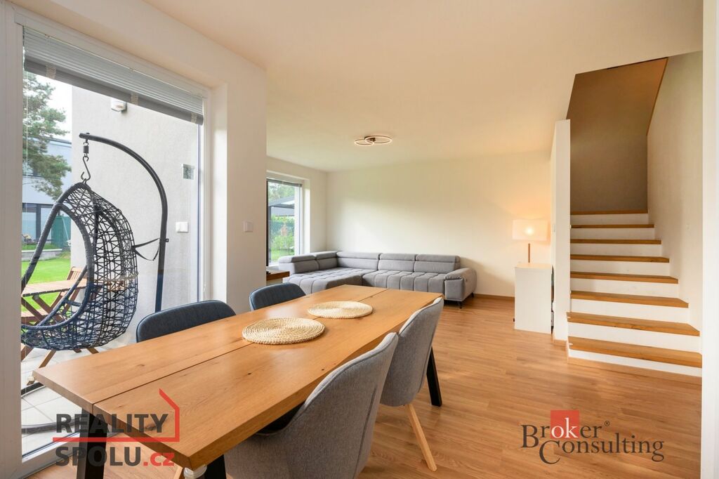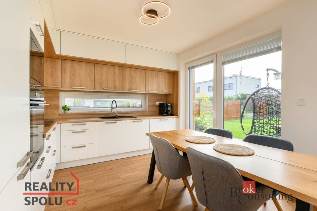 Na pronájem moderní patrový rodinný dům se zahradou v Plzni na Valše. Krajní řadový dům nabízí v přízemí velkou obytnou místnost s kuchyní, komorou a přístupem na zahradu a dále technickou místnost a WC. V patře pak najdeme 3 obytné pokoje a prostornou koupelnu s druhým WC. Je vybaven moderní kuchyňskou linkou na míru včetně všech spotřebičů. Součástí domu je i venkovní komora sloužící na skladování věcí. Dům je obklopen udržovanou zahradou, která nabízí prostor pro relaxaci, dětské hry apod.