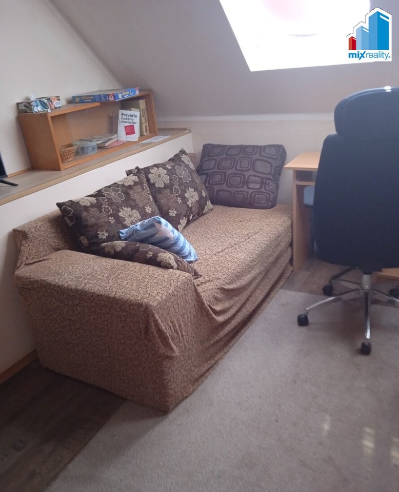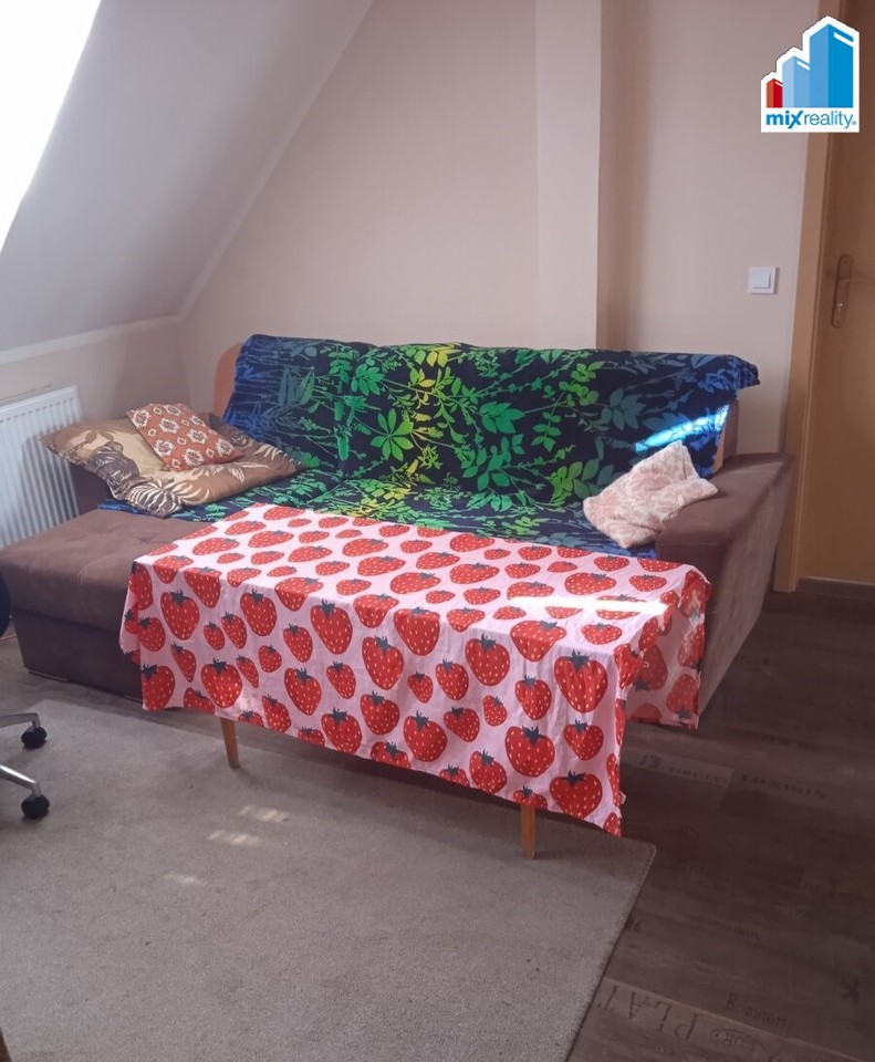 Pokoj o velikosti cca 22 m2 se nachází v podkroví, kde je i sdílená kuchyň, koupelna a toaleta.