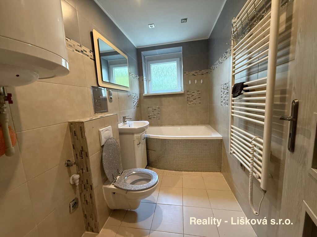 Vyzděné bytové jádro má v koupelně sprchový kout, přípojku na pračku.