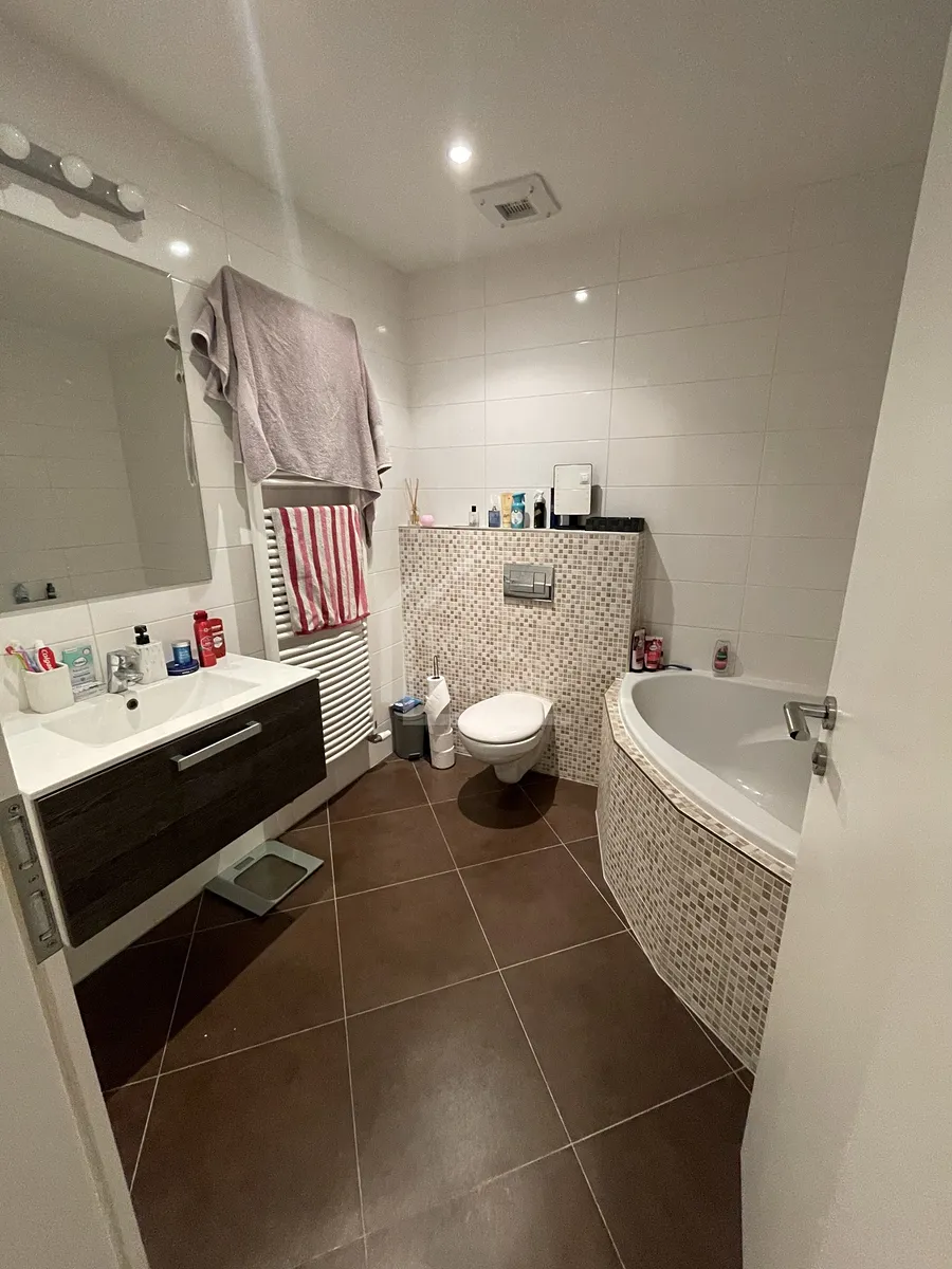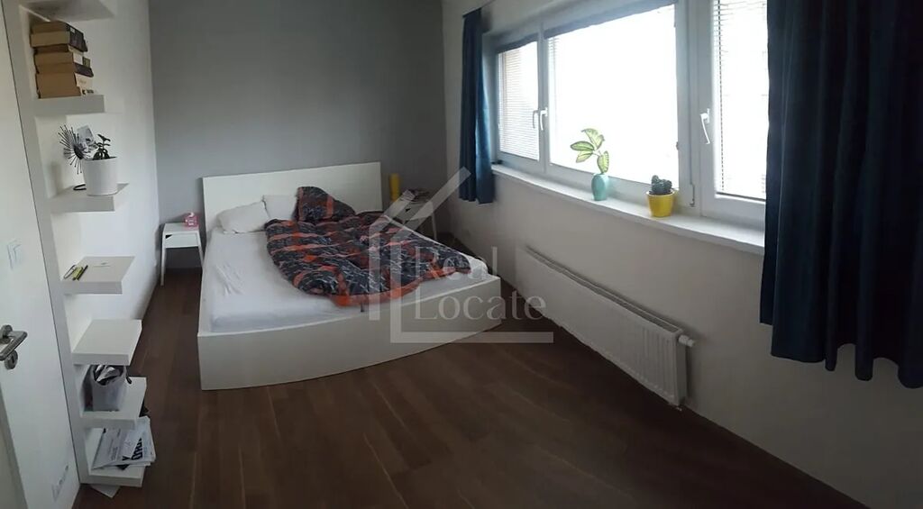 Byt disponuje vstupní chodbou s velkou vestavěnou skříní, ze které je vstup do všech pokojů - prostorné koupelny s rohovou vanou, a toaletou, ložnice a prostorný obývací pokoj s kuchyňskou linkou a s vstupem na terasu. Byt je kompletně zařízený (skříně, gauč, postel, jídelní stůl, kuchyň..).