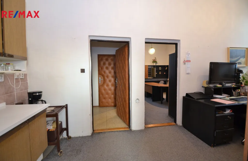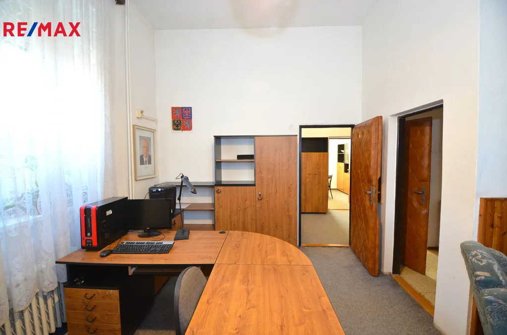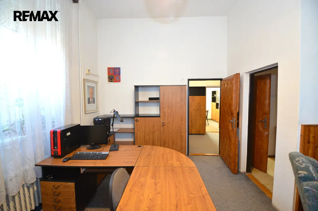 K pronájmu Vám nabízíme nebytový prostor, v současnosti využívaný jako "trojkancelář" o celkové výměře cca 57 m2. Prostor se skládá z předsíňky (cca 4,2m2) vedoucí do dvou místností (18m2 a 14,9 m2) z nichž prostřední je průchozí do třetí místnosti (19,7m2) , nyní využívané jako zasedací místnost. Nabízené prostory se nachází v 1. nadzemním podlaží dvoupodlažní budovy s výbornou dopravní dostupností na Holické ulici v Olomouci. Vytápění je zajištěno kotelnou společnou pro celou budovu, v současnosti je možné vodu (mimo společné zázemí) využívat v prostřední místnosti.