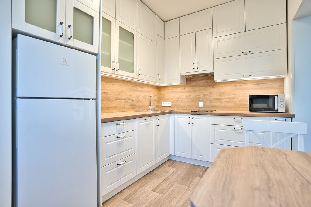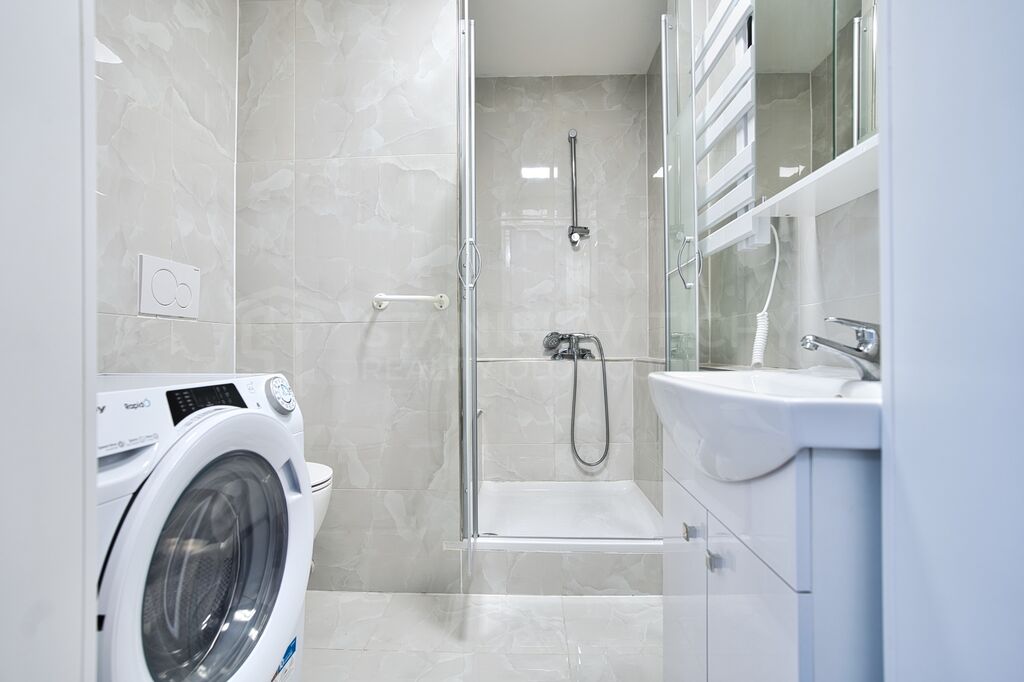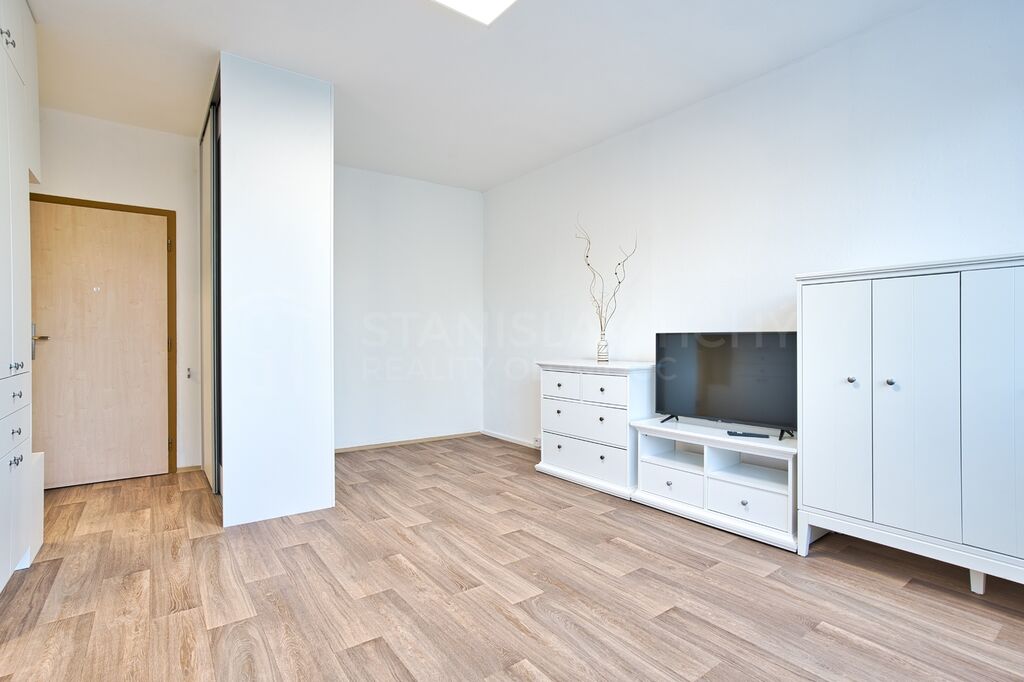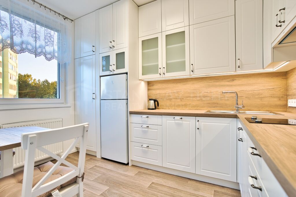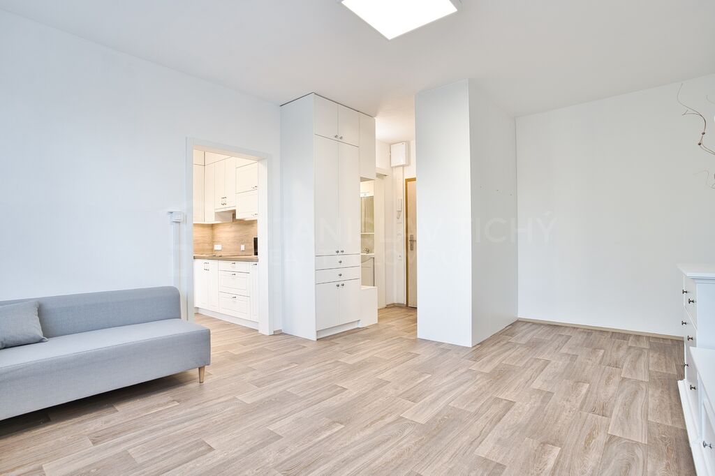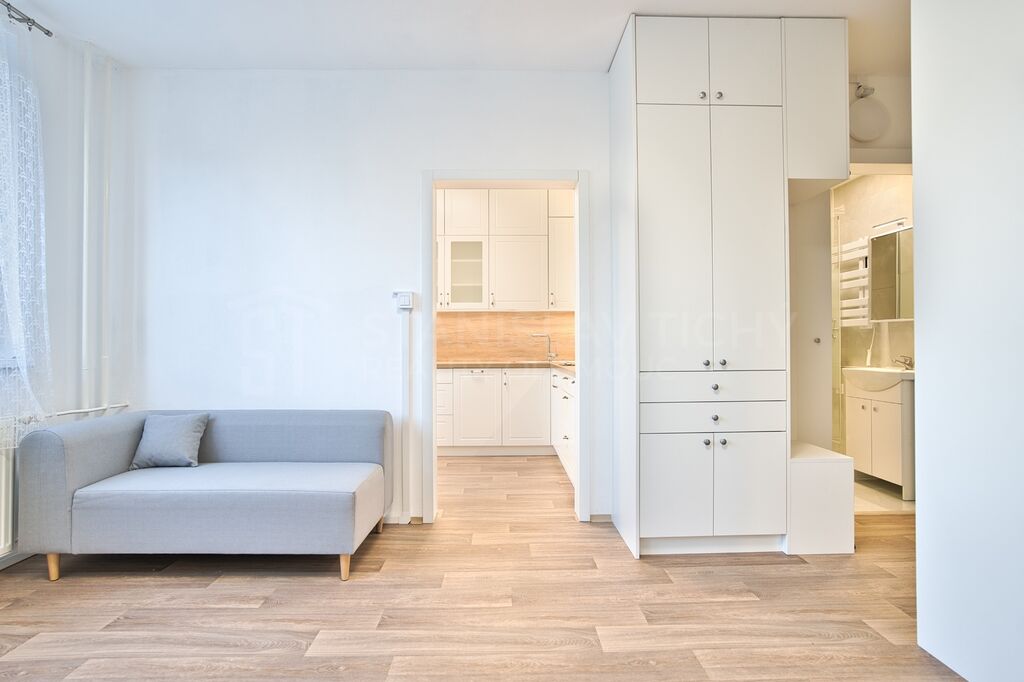 Byt prošel kompletní moderní rekonstrukci a pronajímá se zařízený včetně kuchyňské linky, lednice, pračky a nábytku, připravený k okamžité nastěhování bez dalších investic. Významnou výhodou oproti většině bytů srovnatelné velikosti je relativně prostorná kuchyň s moderní kuchyňskou linkou na míru. Pro uložení věcí oceníte vestavné skříně.