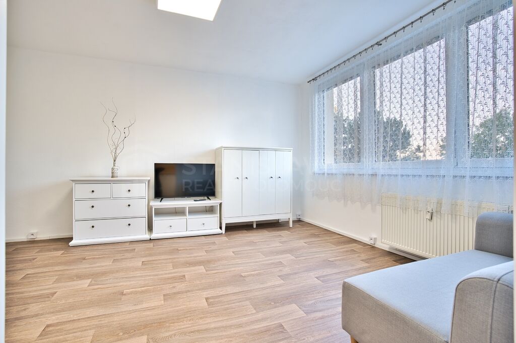 Světlý a útulný byt s dispozicí 1+1 a výměrou 32 m2 je situovaný ve 3.NP klidného panelového domu s výtahem, stojícího na vyhledávaném sídlišti v městské čtvrti Lazce.