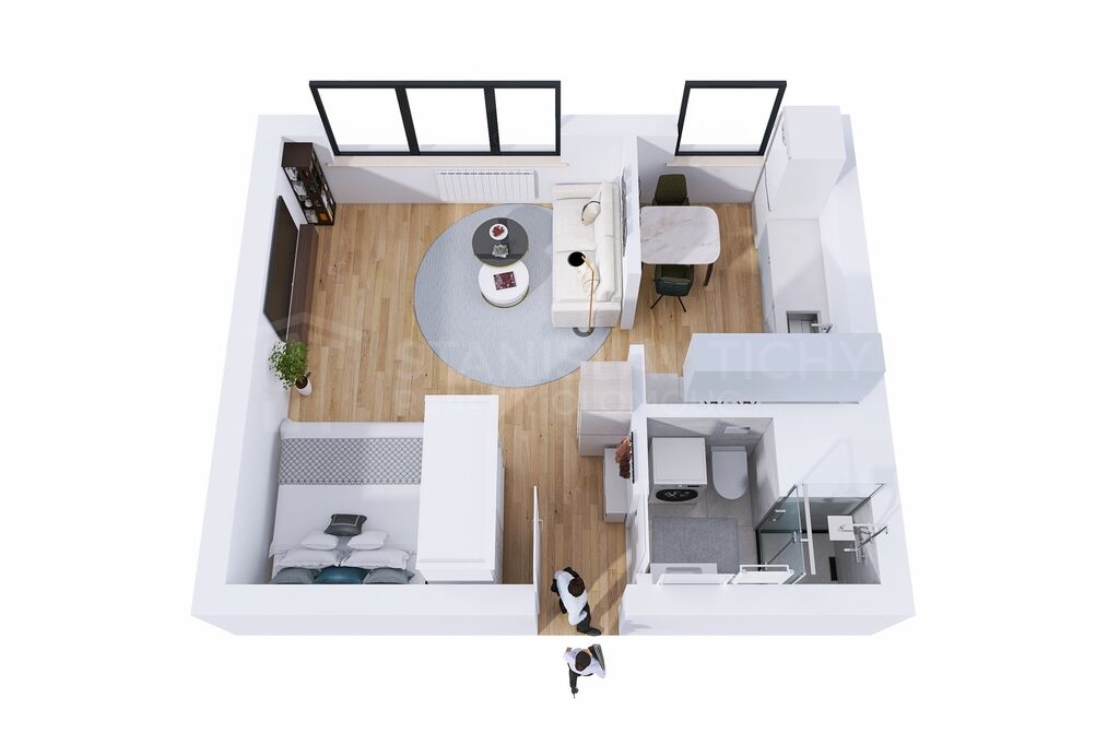 Byt je ideální pro jednotlivce, případně jako startovací bydlení pro mladé páry, hledající moderní klidné a pohodlné bydlení na okraji města a současně se snadným přístupem do centra.