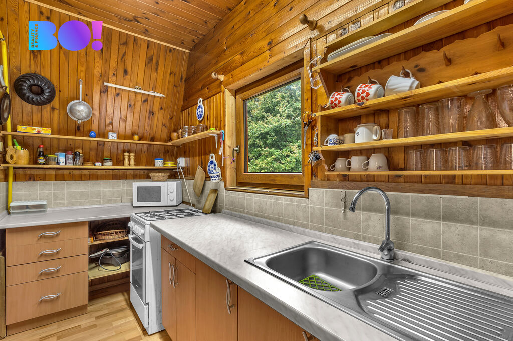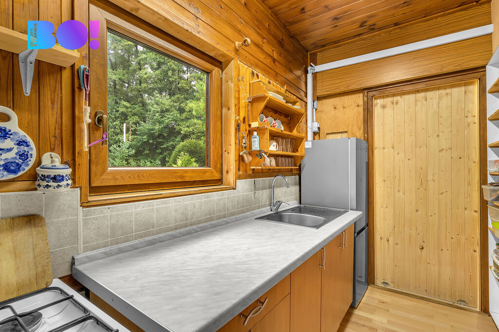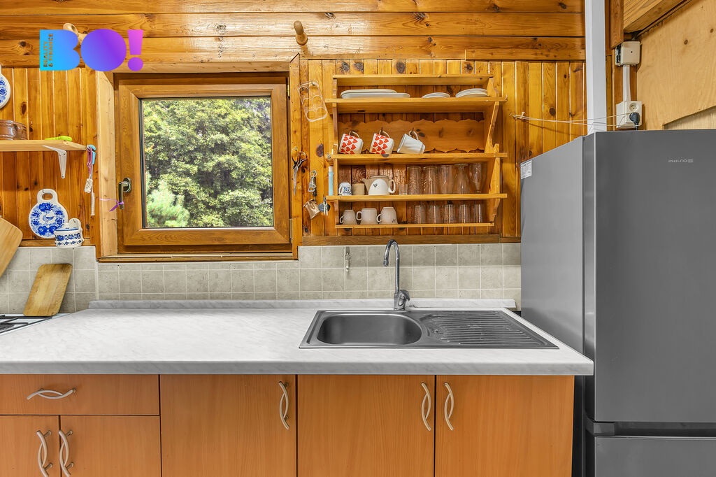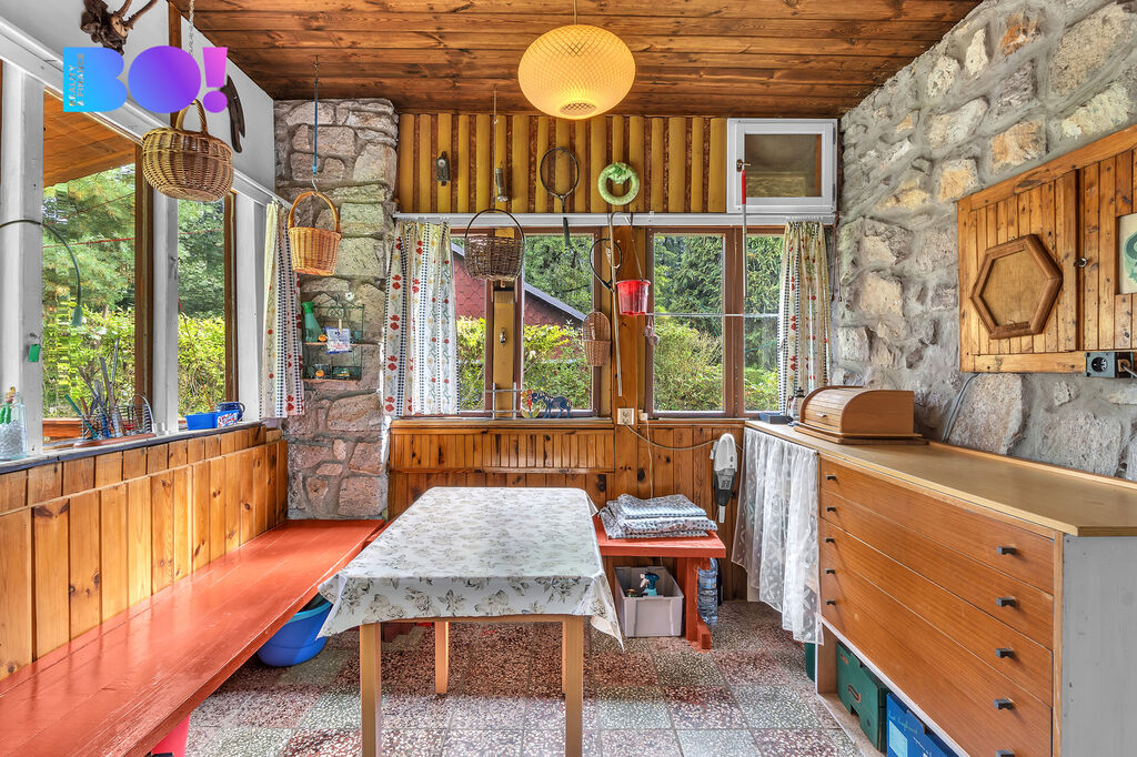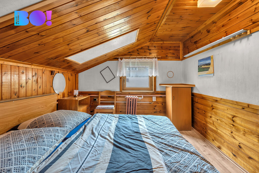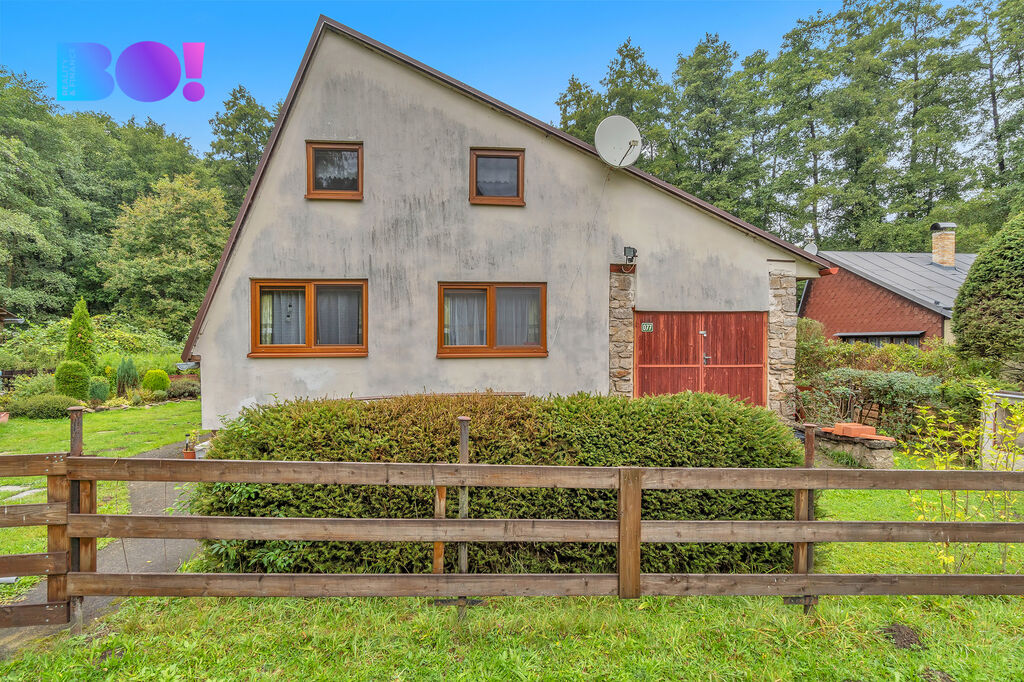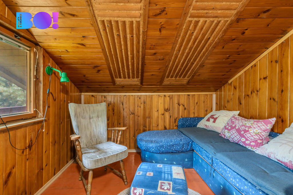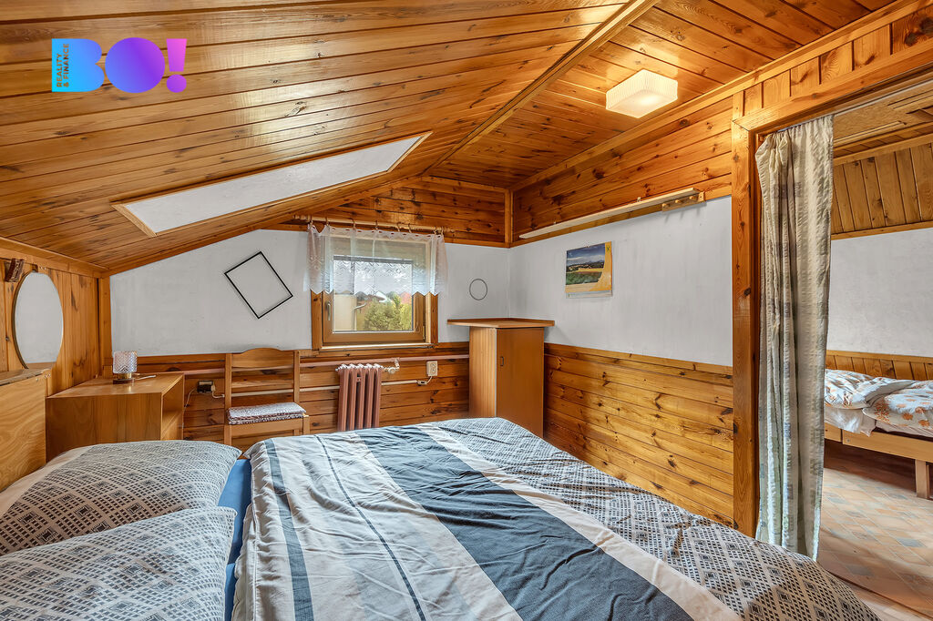 Součástí chaty je také garáž, která slouží jako dílna a sklad. Stav nemovitosti je velmi dobrý, což umožňuje okamžité celoroční užívání – díky fasádnímu zateplení a vytápění plynovým kotlem.
