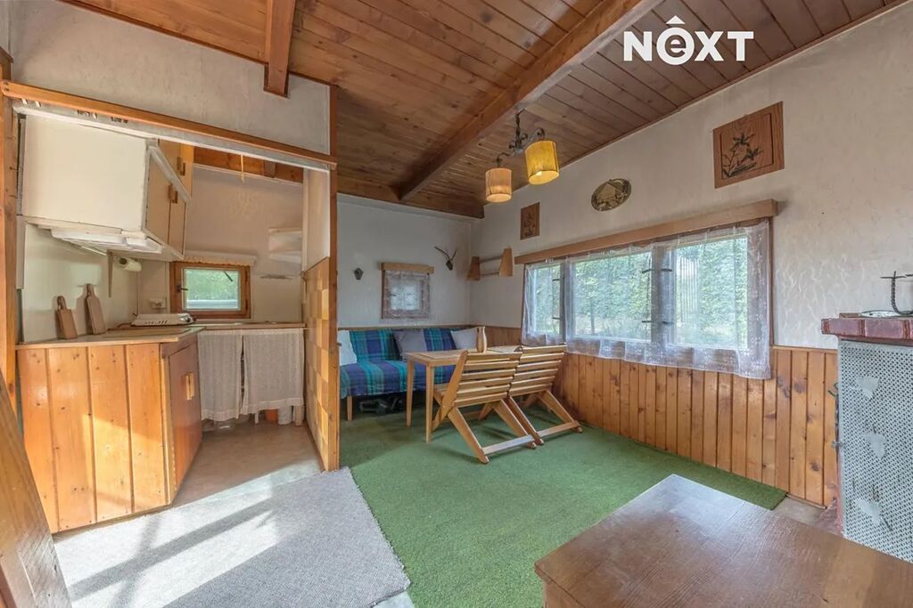 Přízemí – dvě menší předsíňky a obytný pokoj s kuchyňskou linkou, sedací soupravou a krbovými kamny, které vykouzlí tu pravou chalupářskou atmosféru. Podkroví – dva pokoje využitelné jako ložnice. Do chaty je zavedena elektřina, vodu lze čerpat ze studny pomocí čerpadla (užitková voda), je zavedena až na pozemek. Příjezd je po nezpevněné cestě vysypané kamínky, což ještě více podtrhuje kouzlo místa a zajišťuje minimální provoz v okolí. Pokud hledáte víkendové útočiště, místo pro rodinný odpočinek nebo klidný kout obklopený přírodou, přijďte se podívat osobně. Atmosféra lesa a zahrady se nedá popsat, tu je třeba zažít. Pro komunikaci uvádějte evidenční číslo zakázky N114410.