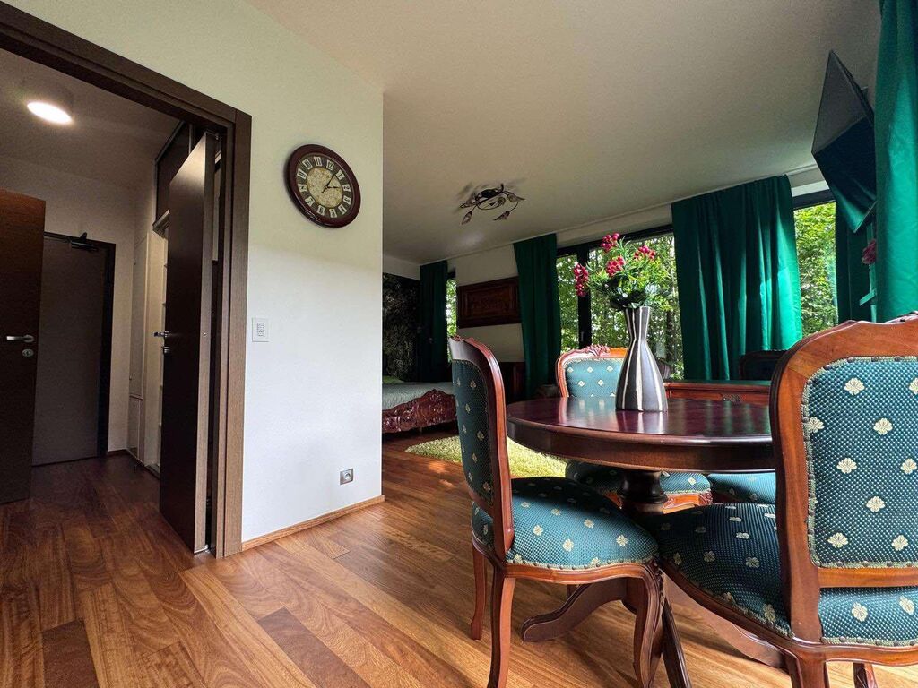 Byt je zařízen do posledního detailu. Obytný prostor je prosvětlen velkoformátovými okny s výhledem do zeleně a nabízí kombinaci odpočinkové, pracovní a jídelní části. Kuchyňská linka na míru je vybavena vestavnými spotřebiči troubou, varnou deskou, myčkou, mikrovlnnou troubou a lednicí s mrazákem. K dispozici je pohodlné posezení, pracovní stůl, ložnicová část s manželskou postelí a dostatek úložného prostoru. Koupelna je vybavena vanou a pračkou Miele, samostatné WC a prostorná vstupní hala s vestavnou skříní doplňují komfortní dispozici.