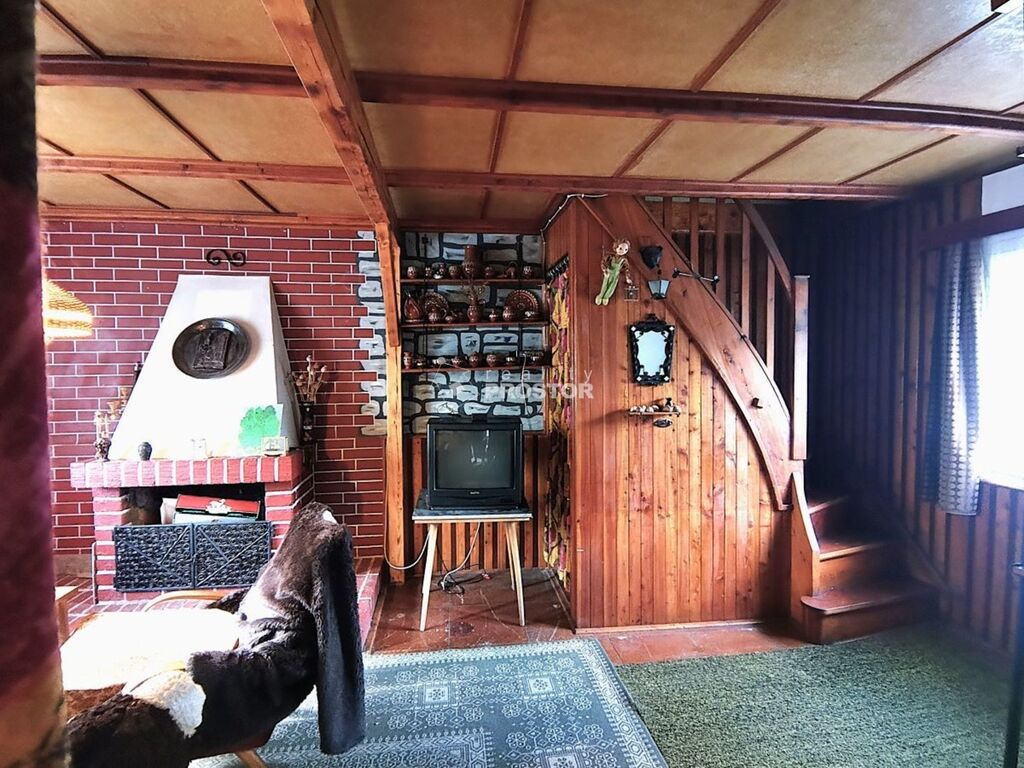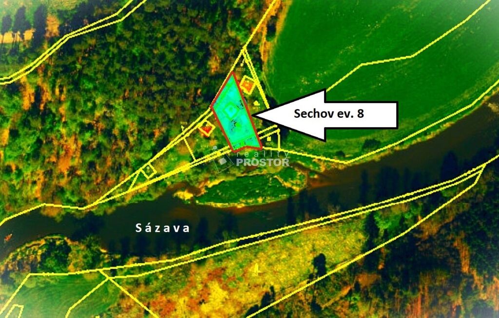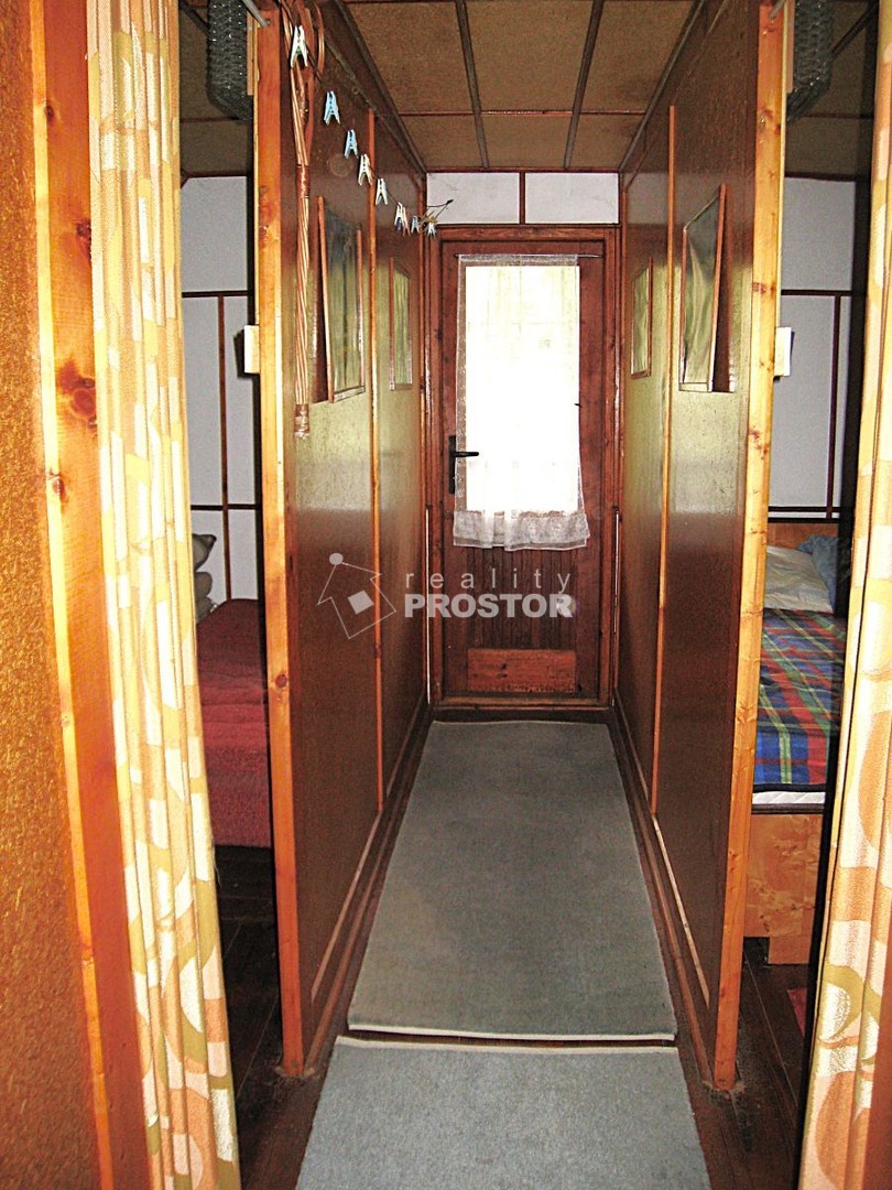 Nabízíme k prodeji zděnou chatu 3+1 v osobním vlastnictví s užitnou plochou 50 m2 stojící na vlastním pozemku 536 m2 v přímém sousedství řeky Sázavy v k.ú. Sechov, obec Kožlí, okres Havlíčkův Brod. Solidně postavená chata v 70. letech 20. století umistěná na mírně svažitém pozemku má sklípek 11,5 m2, hlavní obytnou plochu 30 m2 ve zvýšením přízemí a dostatečně vysoké podkrovní prostory 20 m2, v současné době rozdělené chodbičkou do dvou místností, k tomu WC a balkon 5 m2. Hlavní obytný prostor má kuchyňku se sporákem na tuhá paliva, prosklenou dřevěnou verandu s příjemným posezením hned vedle vchodu, obývací pokoj s kamny a ještě navíc s funkčním krbem a dřevěné schodiště do horního podlaží. V objektu je přípojka elektřiny včetně 400 V a voda z vlastní studny, přivedená elektrickou vodárnou. Vedle chaty je zastřešené posezení se zděnou udírnou, dřevník 7 m2 a krytý přístřešek na automobil. Vybavení chaty dávají prodávající k dispozici novým vlastníkům.
