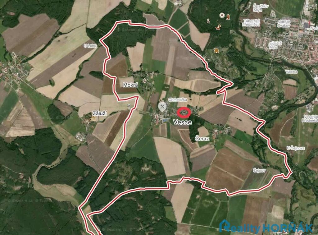 Dovoluji si Vám exkluzivně nabídnout prodej nadstandardní stavební parcely (s vlastní příjezdovou cestou) pro výstavbu rodinného domu v malé vísce Vesce u Soběslavi. Nabídka sestává ze tří samostatně vyměřených parcel o celkové rozloze 3.367 m2. Dvě parcely o výměrách 1.392 a 1.421 m2 jsou vymezeny jako stavební a třetí, o výměře 554 m2, tvoří příjezdovou cestu. Pro případ koupě jedním vlastníkem, budou všechny tři parcely převedeny do jeho výlučného vlastnictví. Pro případ, kdy by byly stavební parcely prodávány samostatně (je to možné, ale byla by to opravdu škoda…), pak by k příjezdová cesta spadala do podílového spoluvlastnictví.