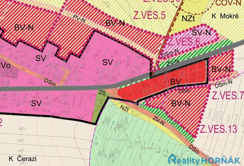 Územním plánem jsou parcely zařazena do plochy SV - smíšené obytné venkovské, tedy s využitím k výstavbě rodinného domu. Územní plán zde připouští stavbu až se dvěma nadzemními podlažími a podkrovím, minimální podíl ploch zeleně je stanoven na (snadno akceptovatelných) 40%.