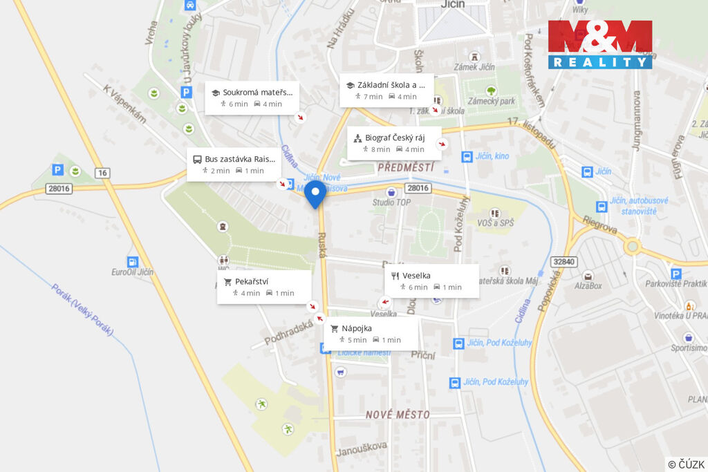 Pronájem bytu 2+kk o podlahové ploše 48 m2 ve 3. nadzemním podlaží bytového domu v centru města Jičín, v ulici Ruská. Součástí bytu je parkovací stání v 1. podzemním podlaží a sklep (2 m2). Dispozice: chodba s prostorem na umístění vestavěného nábytku, ložnice, koupelna s WC, obývací pokoj s kuchyňským koutem. V nájmu není zahrnuta částka za úklid společných prostor, kominíka, el. energie společných prostor a poplatek za správu nemovitostí. Vratná kauce je ve výši tří nájmů a jeden nájem za služby realitní kanceláře. Náklady na energie jsou nad rámec nájmu. Byt je k nastěhování od 1.11.2025. Byt je vhodný pro jednu pracující osobu, nebo pár.