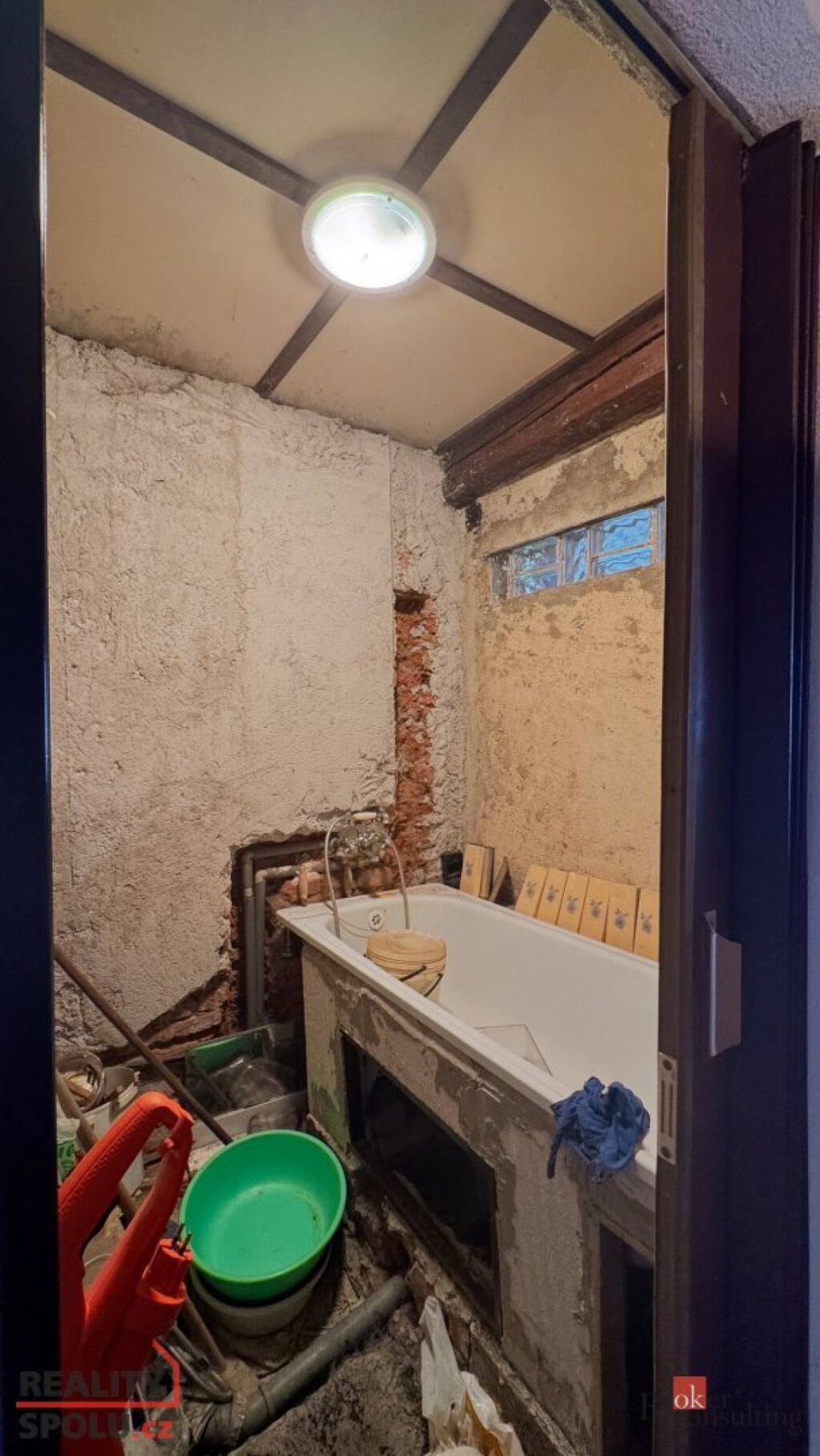 Dům je v zanedbaném a neobyvatelném stavu – sedlová střecha (tašky typu bobrovka) je poškozena a do objektu zatéká, zdivo nese známky vlhkosti, interiér je neudržovaný.