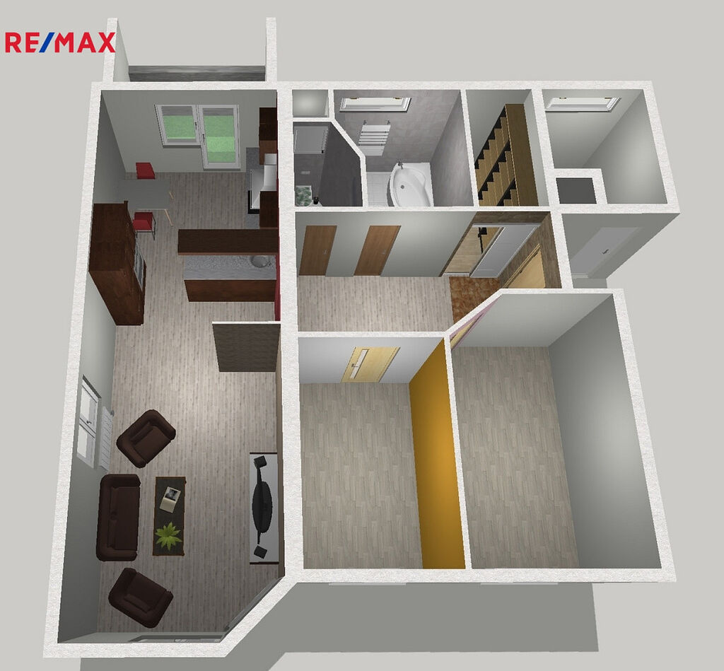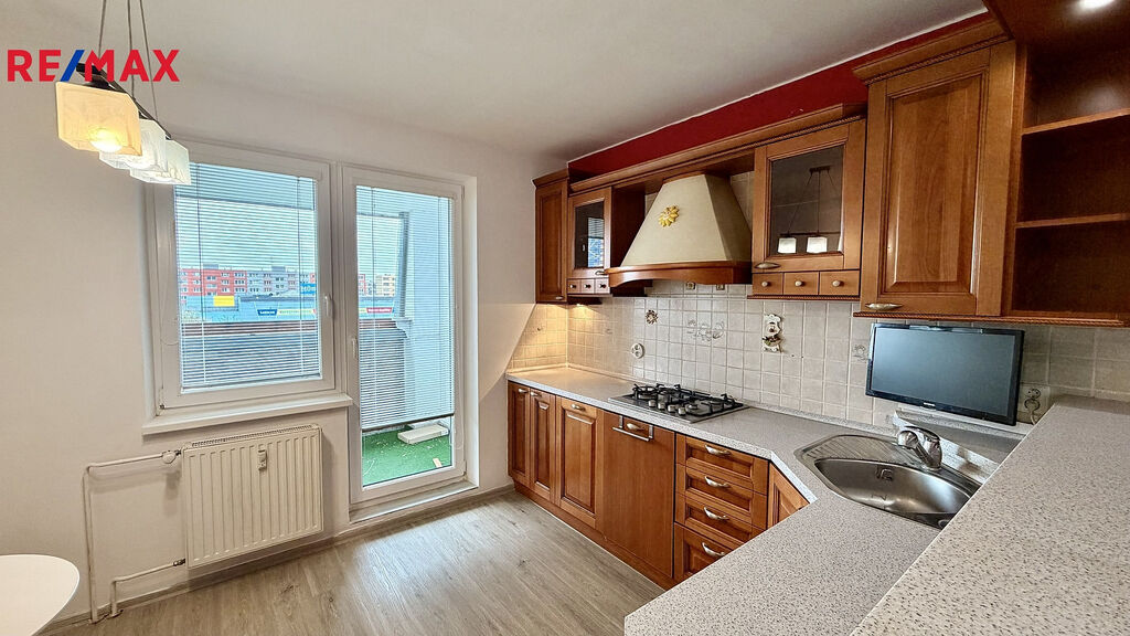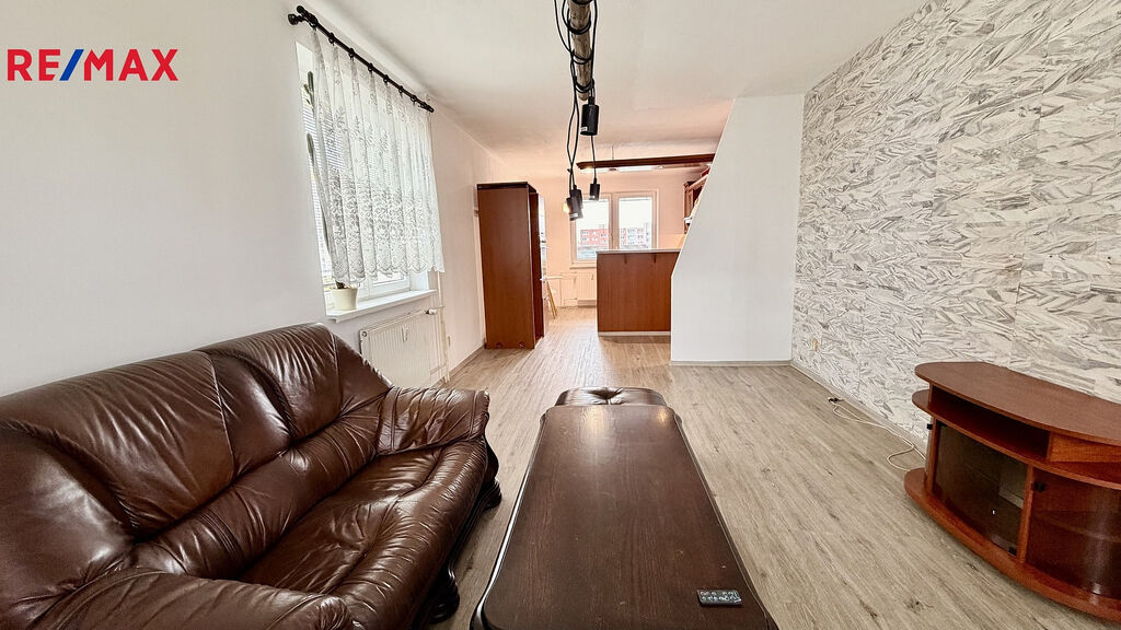 Nabízíme k pronájmu byt 3+1 o podlahové ploše 80,5 m² v Ostravě-Bělském lese na ulici Horní. Pěkný, prostorný byt se nachází ve 4. np v domě o 6 np. Kromě většího obývacího pokoje, který je propojen s kuchyní je v bytě větší chodba, ložnice, dětský pokoj, šatna, koupelna a wc. Dispozice je patrná z půdorysu. Z kuchyně se vchází na lodžii (5m²). Hned vedle bytu je k dispozici komora, která slouží jako sklep. Celková užitná plocha bytu je tedy 90,5 m².