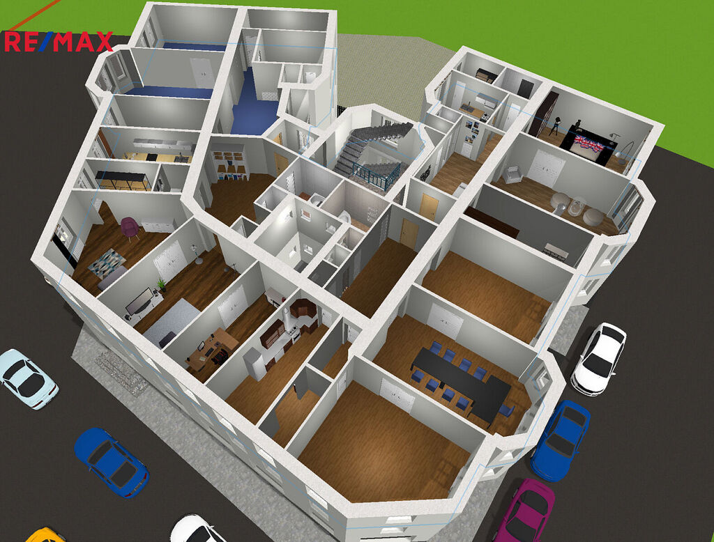 Plocha jednoho podlaží je 489 m², celková využitelná plocha včetně podzemního podlaží a podkroví je cca 2900 m². Podlahová plocha všech jednotek je 1800 m².