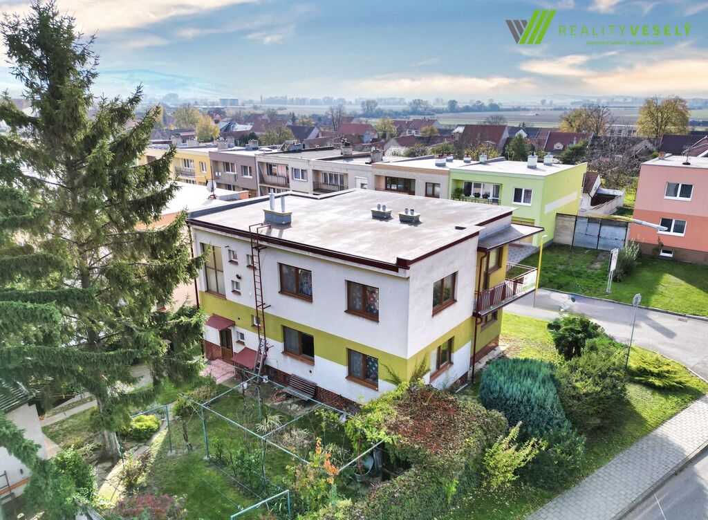 Nabízíme k prodeji dvoupodlažní podsklepený zděný rodinný dům s plochou střechou, v obci Hroznová Lhota, kolaudovaný v roce 1973, obdélníkového tvaru zástavby. Stojí v zástavbě rodinných domů jako samostatný neřadový rohový dům. Přístupný po místní zpevněné komunikaci, připojen na veškeré sítě a kanalizaci přes septik, vytápění ústředním plynovým kotlem, teplá voda z elektrického bojleru. Ve dvoře hospodářská stavba s dvěma garážemi, zahrada s ovocnými stromy, vlastní studna (momentálně nepoužívaná).