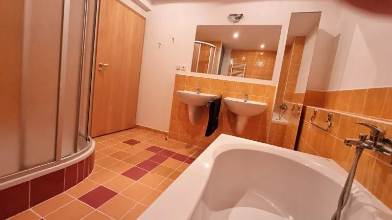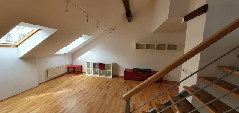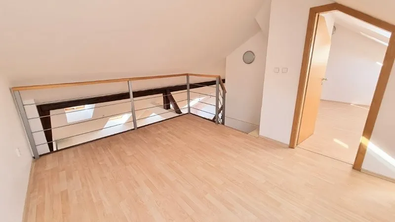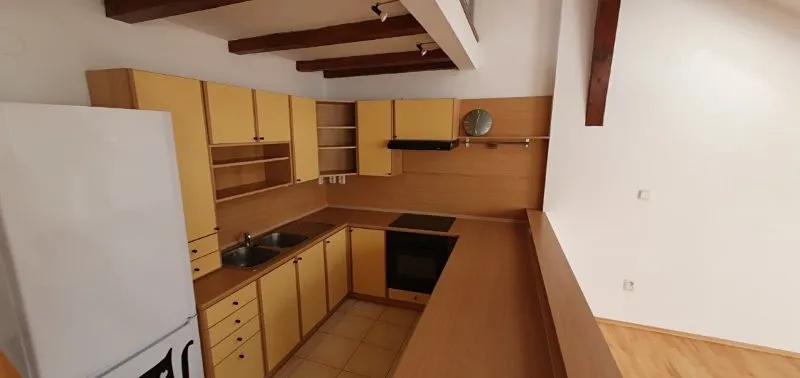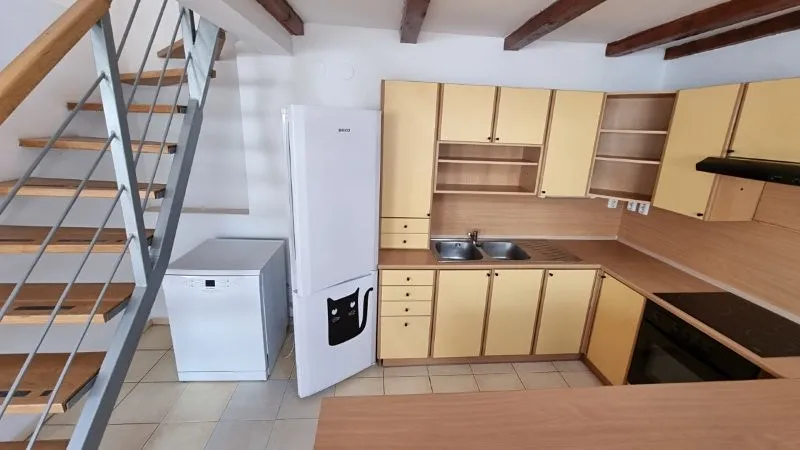 1334 3,5+kk, Jihlava, ul. Mahlerova, kompletně zrekonstruovaný podkrovní byt ve 2. patře zděného bytového domu poblíž centra Jihlavy. Vybavení – šatní skříň v předsíni, vana, sprchový kout, dvě umyvadla a automatická pračka v koupelně, kuchyňská linka včetně spotřebičů ( myčka nádobí, lednice s mrazákem, el. varná deska, el. trouba a digestoř ), dvoudílná skříň v ložnici atd.. Vlastní plynové topení a ohřev vody. Byt se skládá z větší předsíně, velkého obývacího pokoje s kuchyňským koutem a s galerií v patře, dvou ložnic, koupelny a samostatného WC. Výměra bytu je 105 m2 + sklep cca 16 m2. Dlouhodobý pronájem. Volný od ihned. PENB „G“ - nájemné 14.500,- Kč/1 měs. + energie 4.500,- Kč + kauce 14.500,- Kč + jednorázová provize pro RK 14.500,- Kč