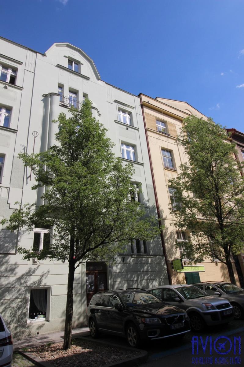 Byt se nachází v 1. patře historického domu s novou fasádou a novými okny. K dispozici je malý dvorek s pěkně udržovanou zelení.