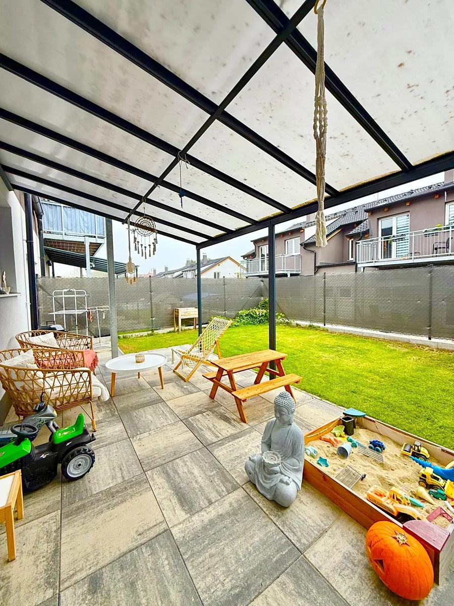 - zahrádka s pergolou 70 m2 a skladem 5 m2 pro uložení zahradního nábytku či sportovní výbavy