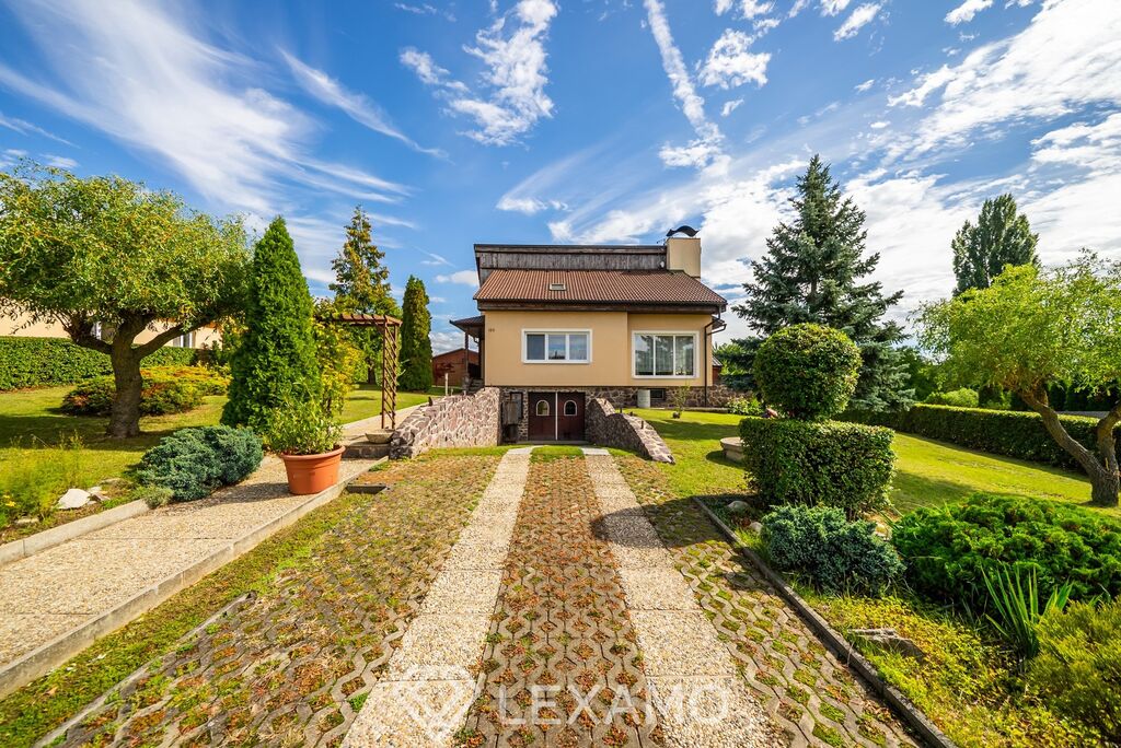 K domu náleží také samostatně stojící dvojgaráž, letní kuchyně a několik dalších technických a úložných prostor. Zahrada je pečlivě udržovaná, osázená okrasnými keři i ovocnými stromy a nabízí dostatek soukromí i prostoru pro odpočinek, pěstování nebo rodinné aktivity.