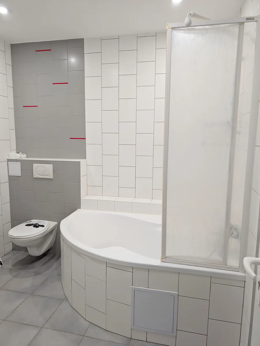 - Byt má plastová okna, je vyčištěn a nově vymalován, na podlaze PVC a dlažba