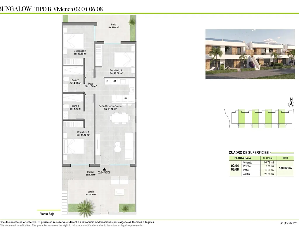 Krásné bungalovy s 2 nebo 3 ložnicemi a 2 koupelnami, navržené s důrazem na pohodu a kvalitu života obyvatel.