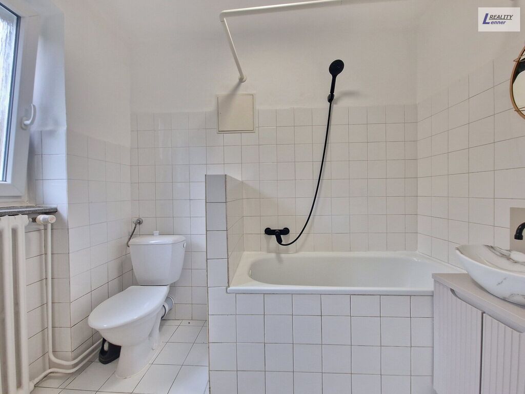Koupelna s vanou místem pro pračku společně s WC kombi.