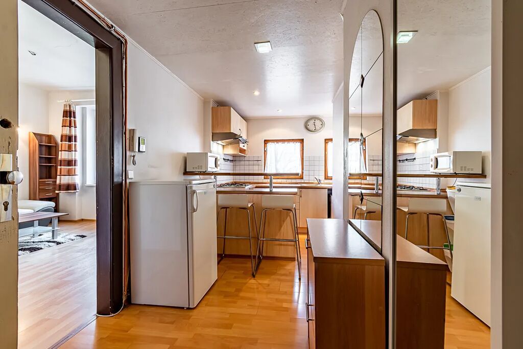 Byt se skládá ze světlého obývacího pokoje, samostatné kuchyně, poté menší ložnice s patrem, která má okno do obývacího pokoje a koupelny se sprchovým koutem. Byt je kompletně zařízený (pouze TV nebude) a lze se dohodnout na případném odstěhováním některého nábytku.