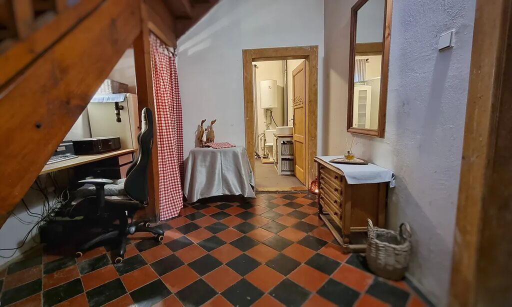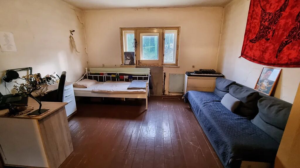 Cihlový rodinný dům o dispozici 3+kk a podlahové ploše cca 80m2 se skládá z přízemí a 1.patra. Přízemí rodinného, cihlového domu tvoří předsíň, koupelna se sprchovým koutem + toaletou, obývací pokoj s krbovými kamny a odděleným kuchyňským koutem, a ložnicí. V prvním patře, propojeném dřevěným schodištěm, nalezneme oddělenou ložnici.