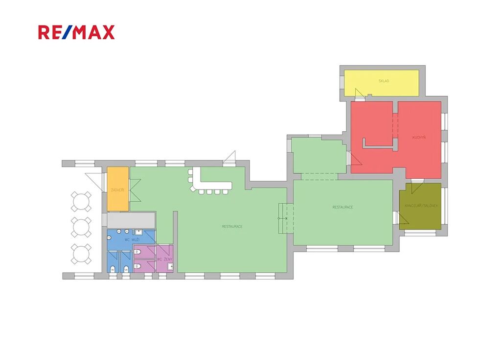 Ze současného vybavení lze ponechat to, co budete potřebovat: nábytek - stoly, židle a další zařízení, bar se zařízením, jukebox, automat na cigarety, lze přenechat i sklo a vybavení kuchyně, vše dle domluvy.