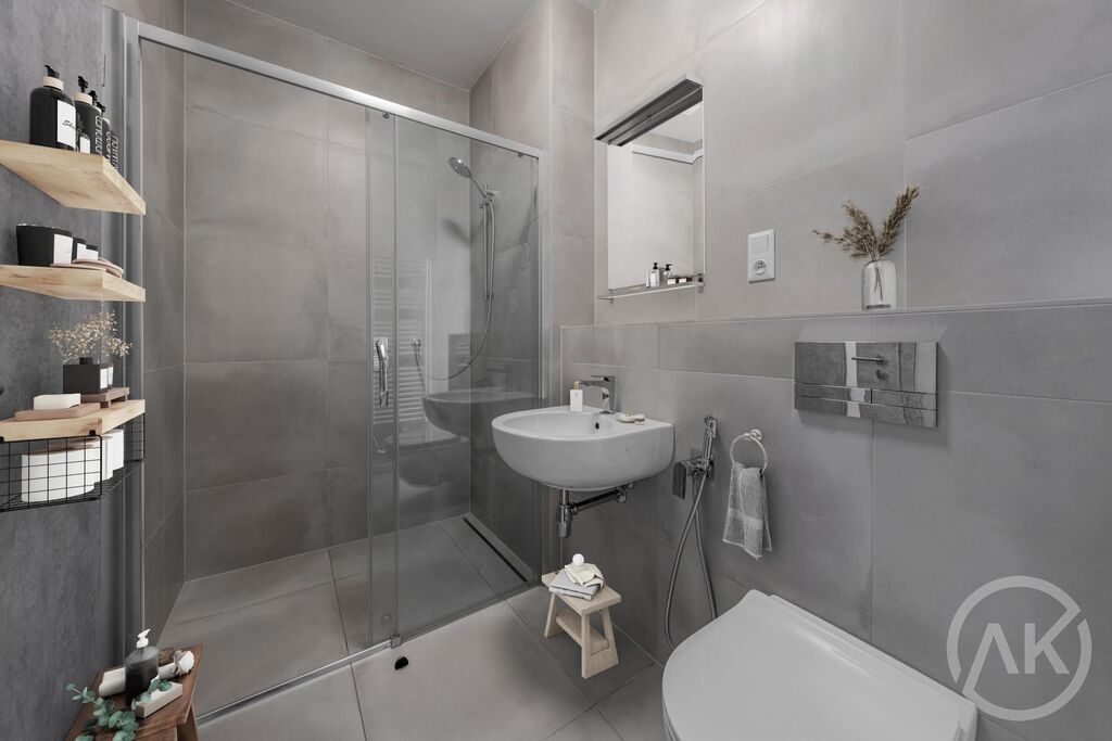 - v koupelně je walk in sprchový kout a okno. To se občas hodí, když to s jídlem přejedete a chystáte se pozvat mámu na návštěvu. Taky se vám tam vejde pračka a sušička,