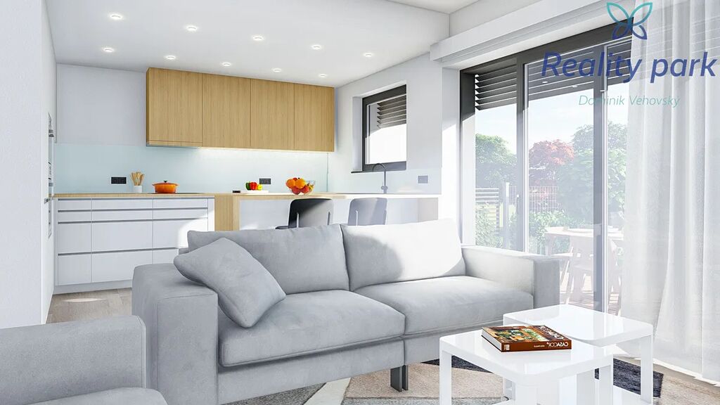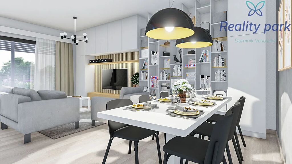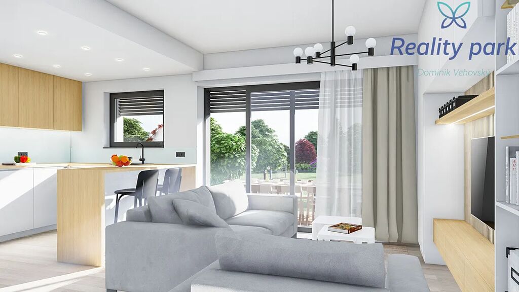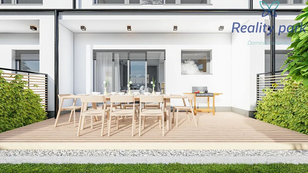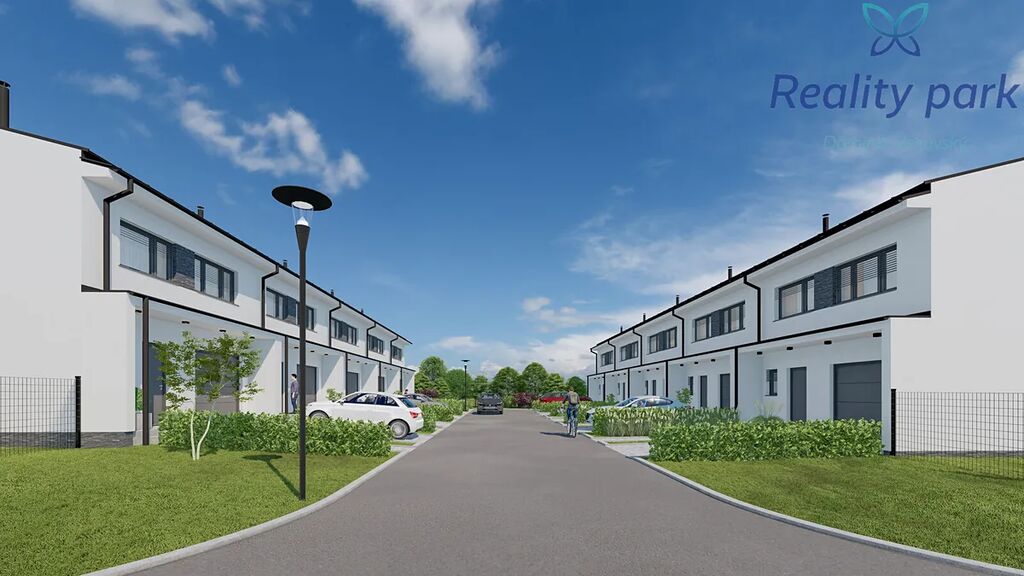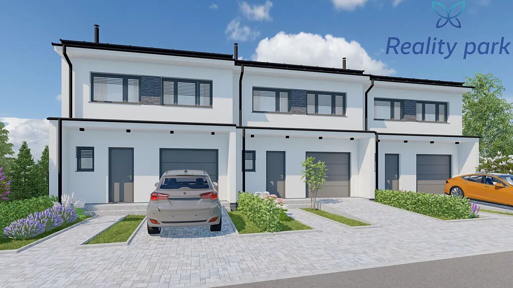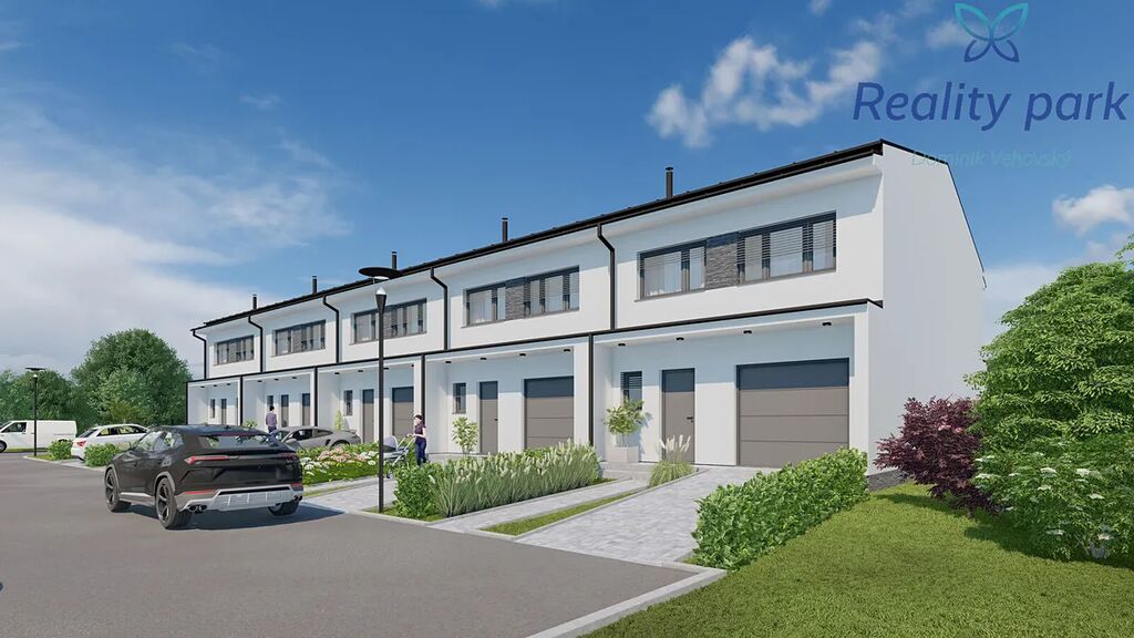 Každý dům má vlastní pozemek zahrady (pozemky s výměrou od 230 m2), před domem pak dvě parkovací stání.